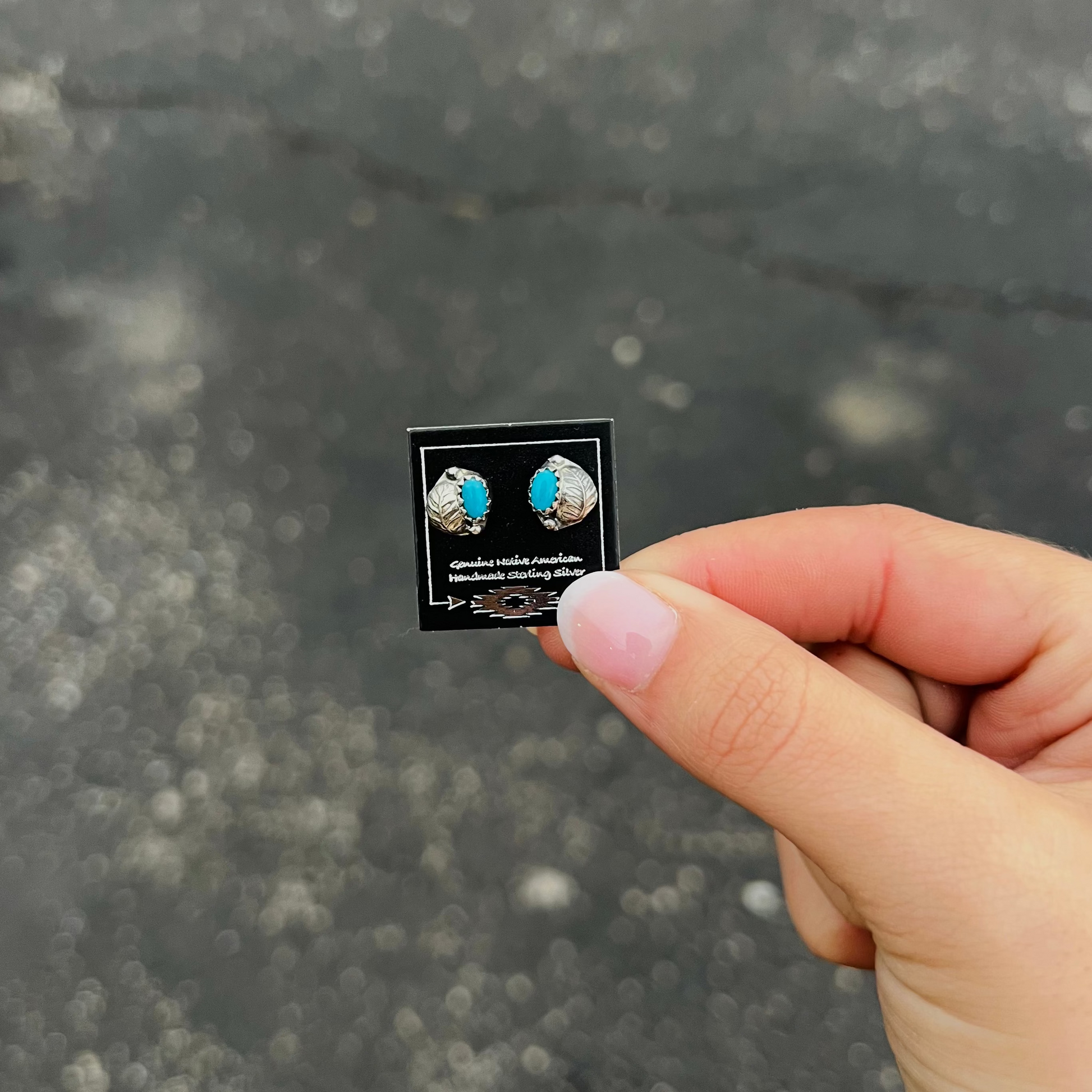-Authentic Native American Handmade Genuine Turquoise and Sterling Silver Earrings