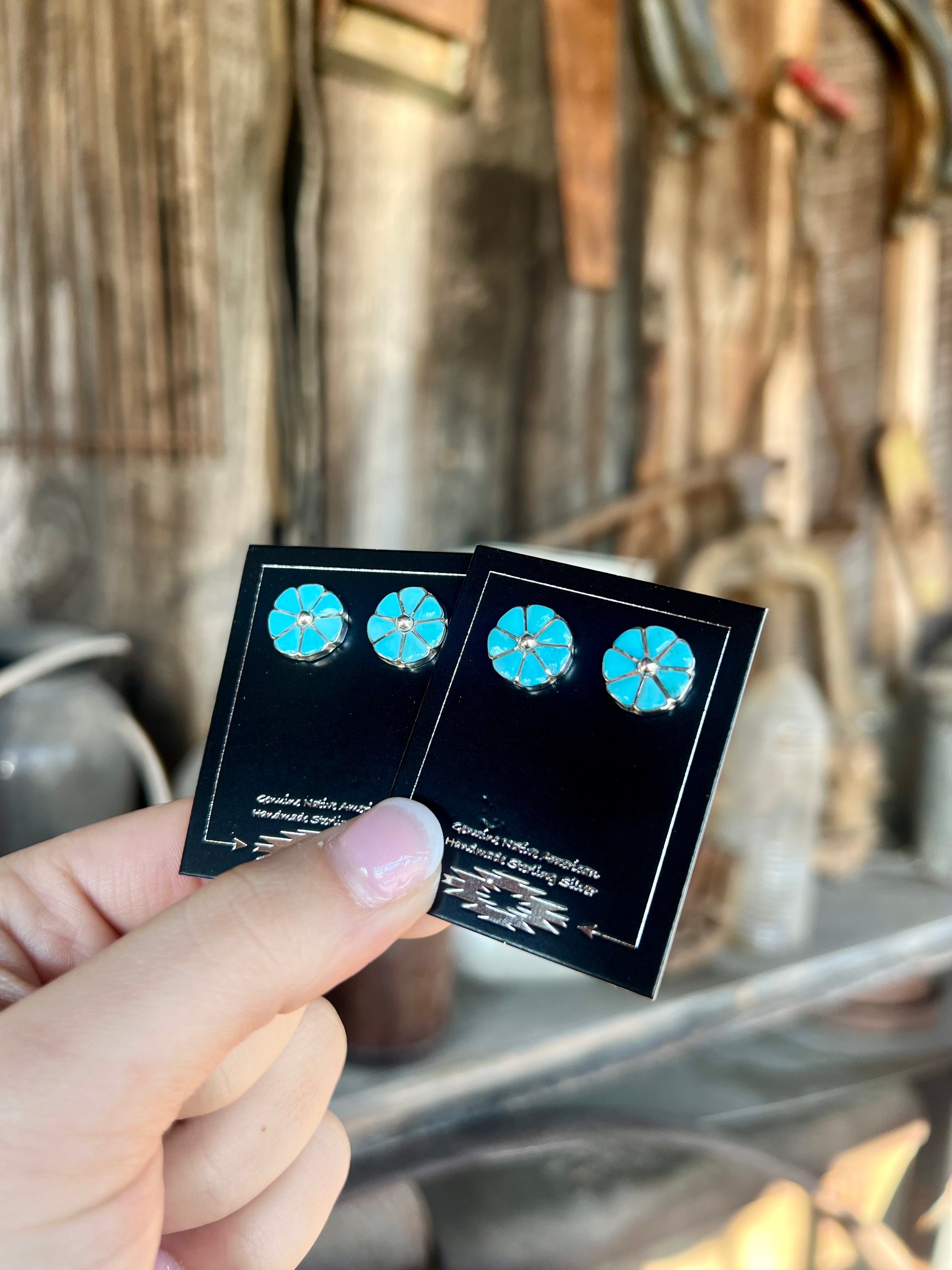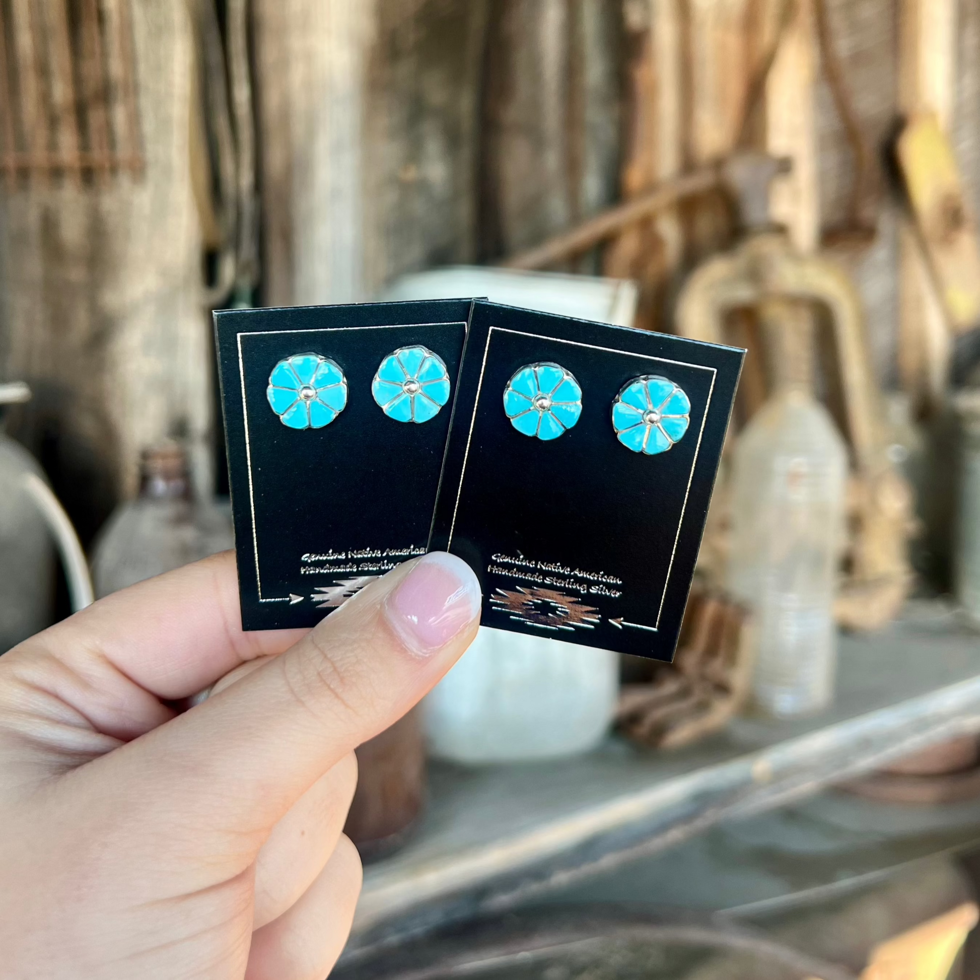 -Authentic Native American Handmade Genuine Turquoise Sterling Silver Earrings