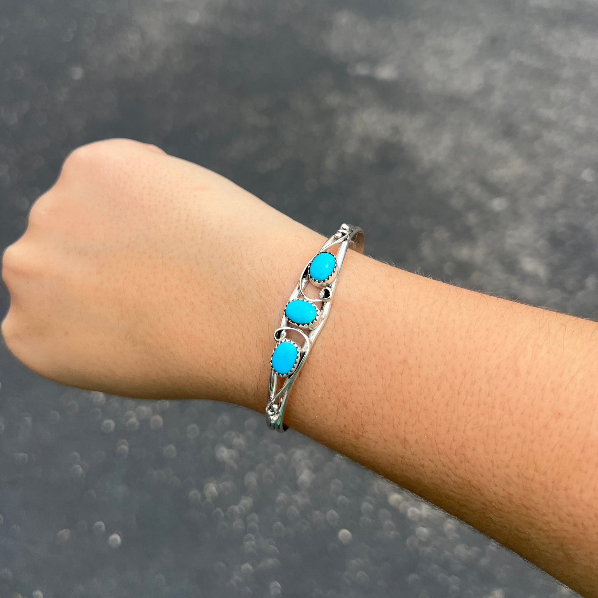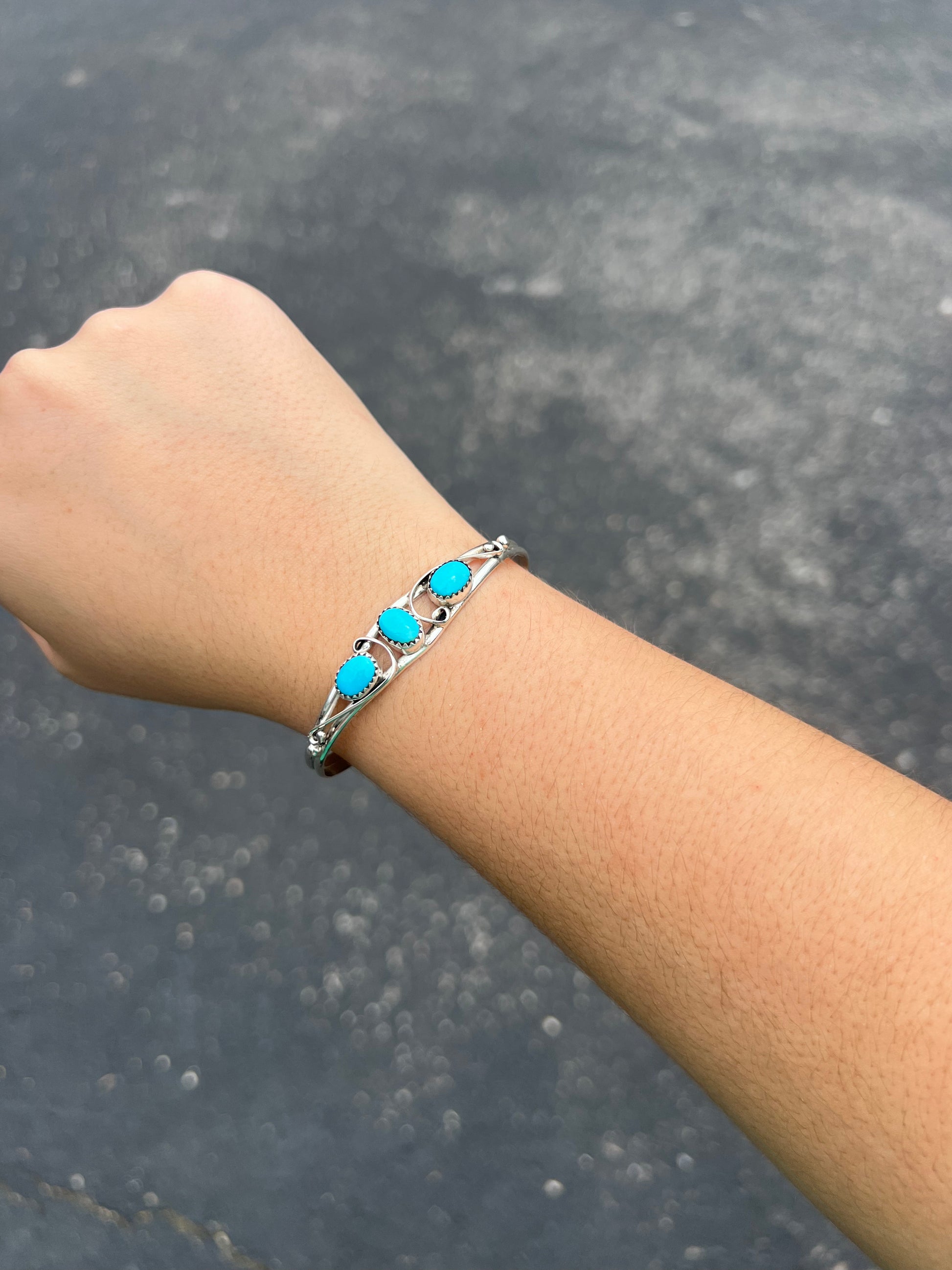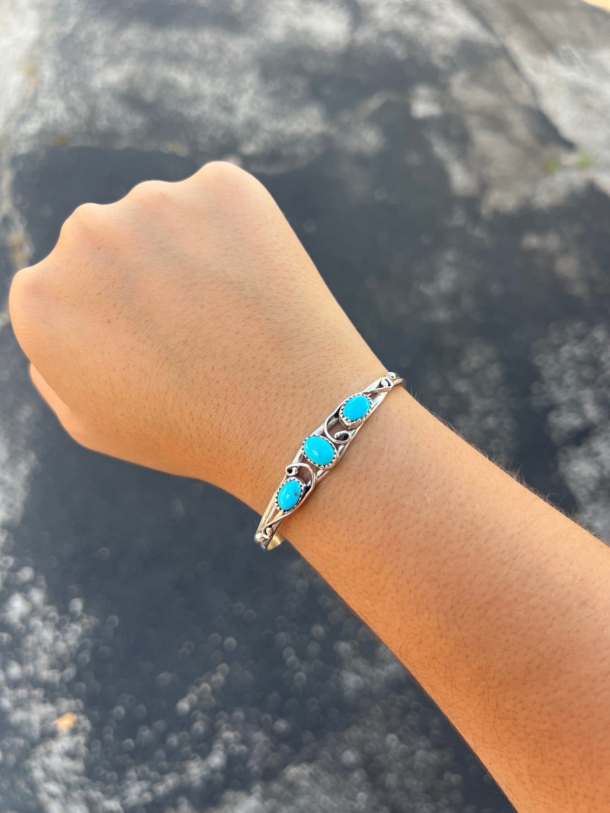Sleeping Beauty Three Stone Turquoise Bracelet