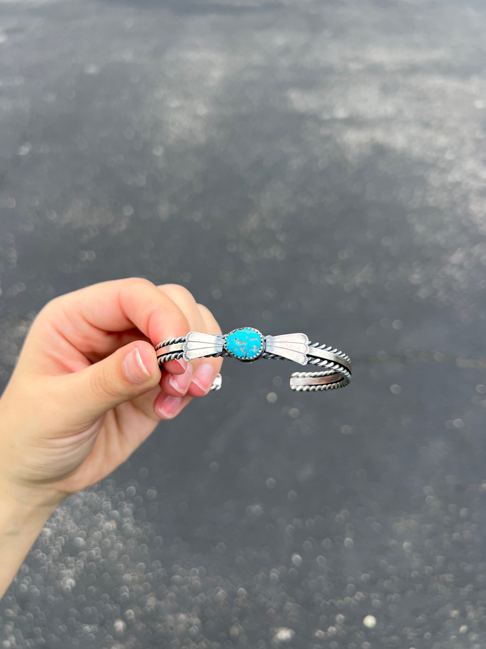 -Authentic Native American Handmade Genuine Kingman Turquoise Sterling Silver Cuff Bracelet