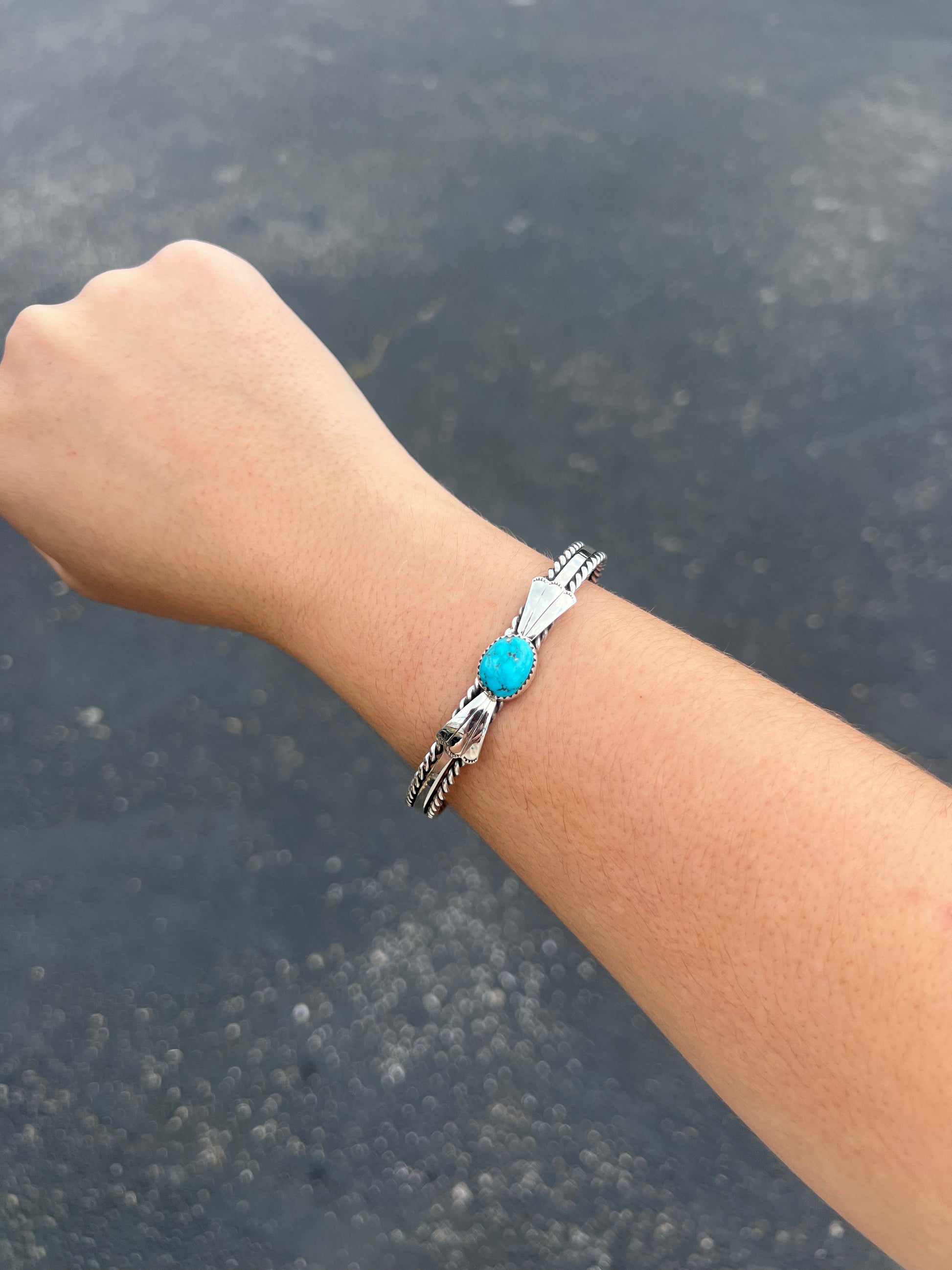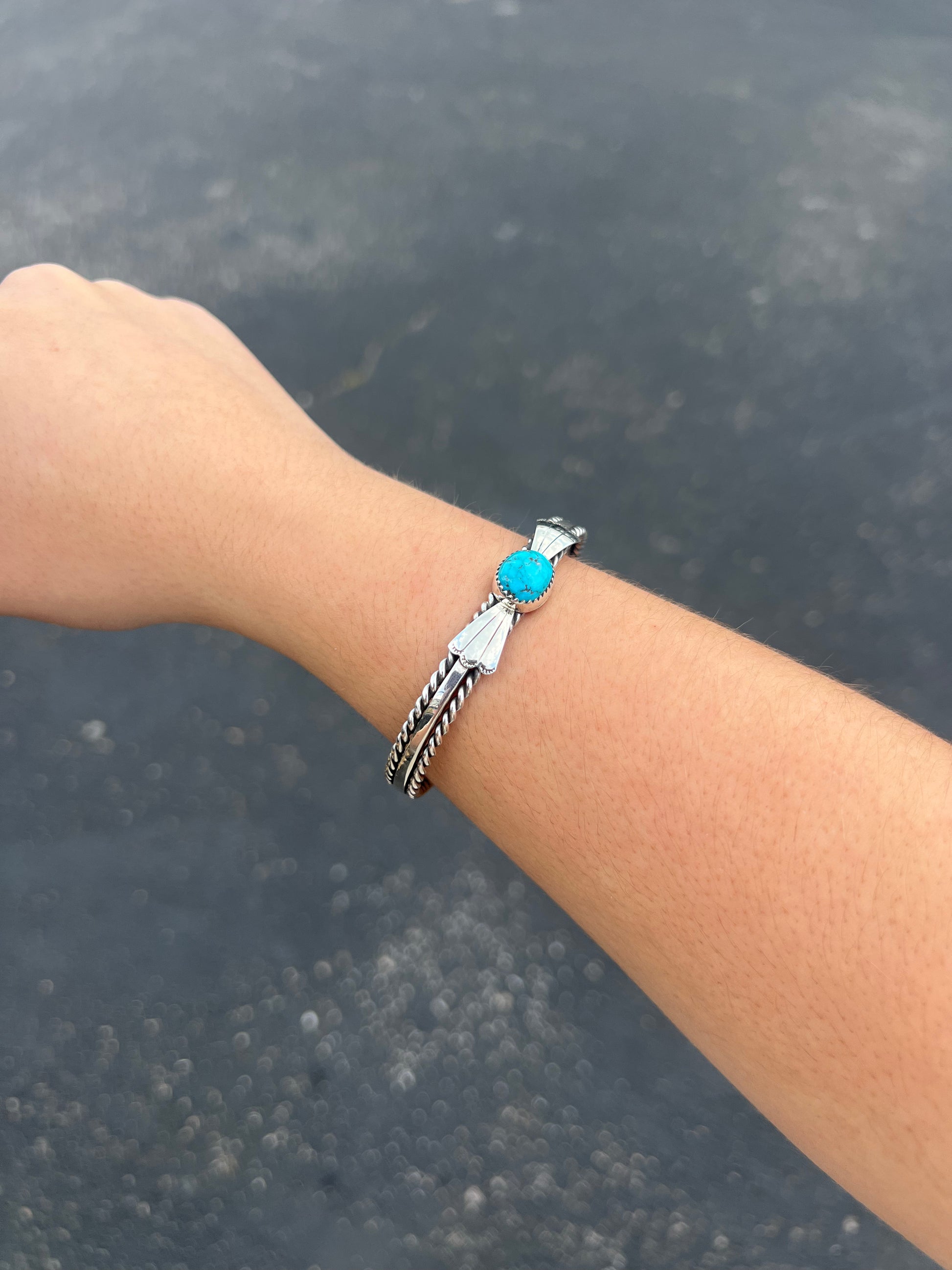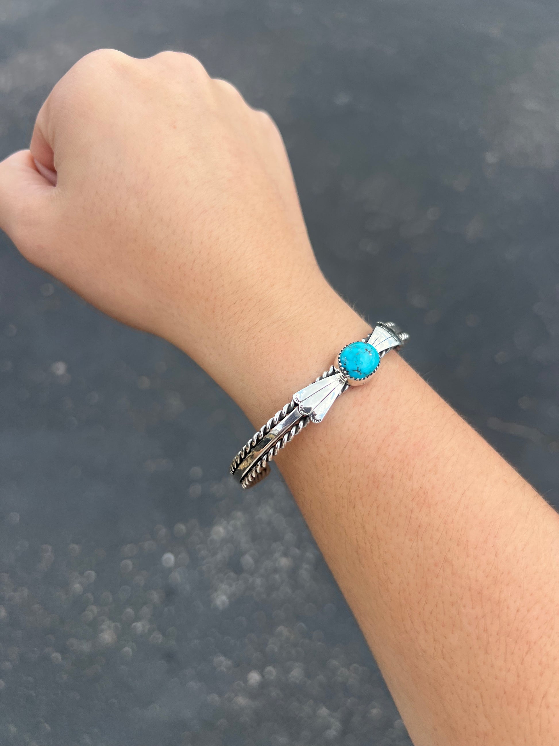 Kingman Turquoise Fan and Twist Wire Sterling Silver Cuff Bracelet