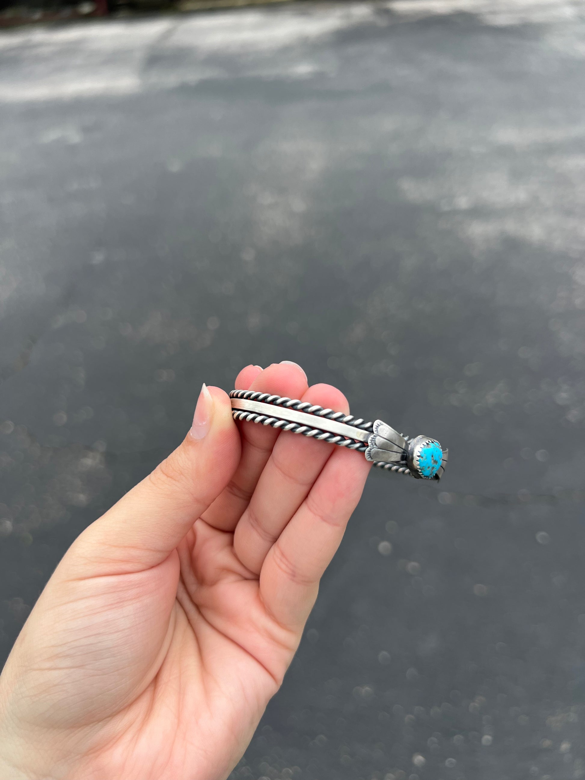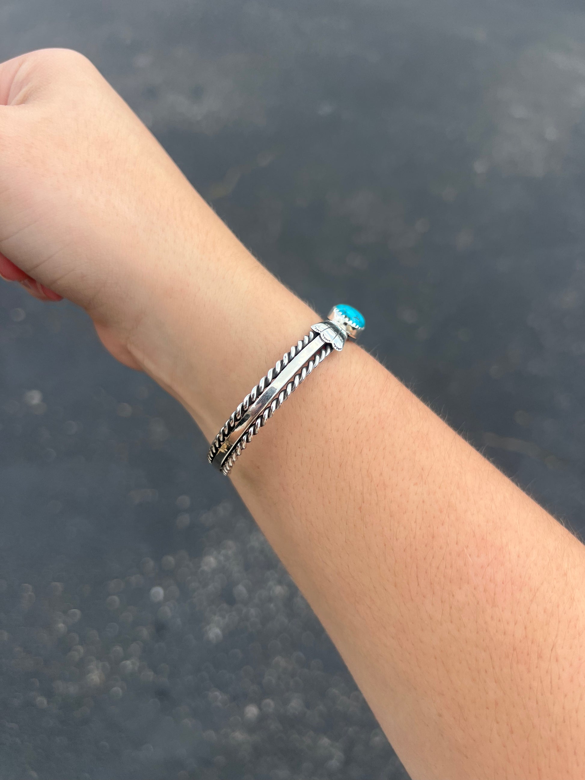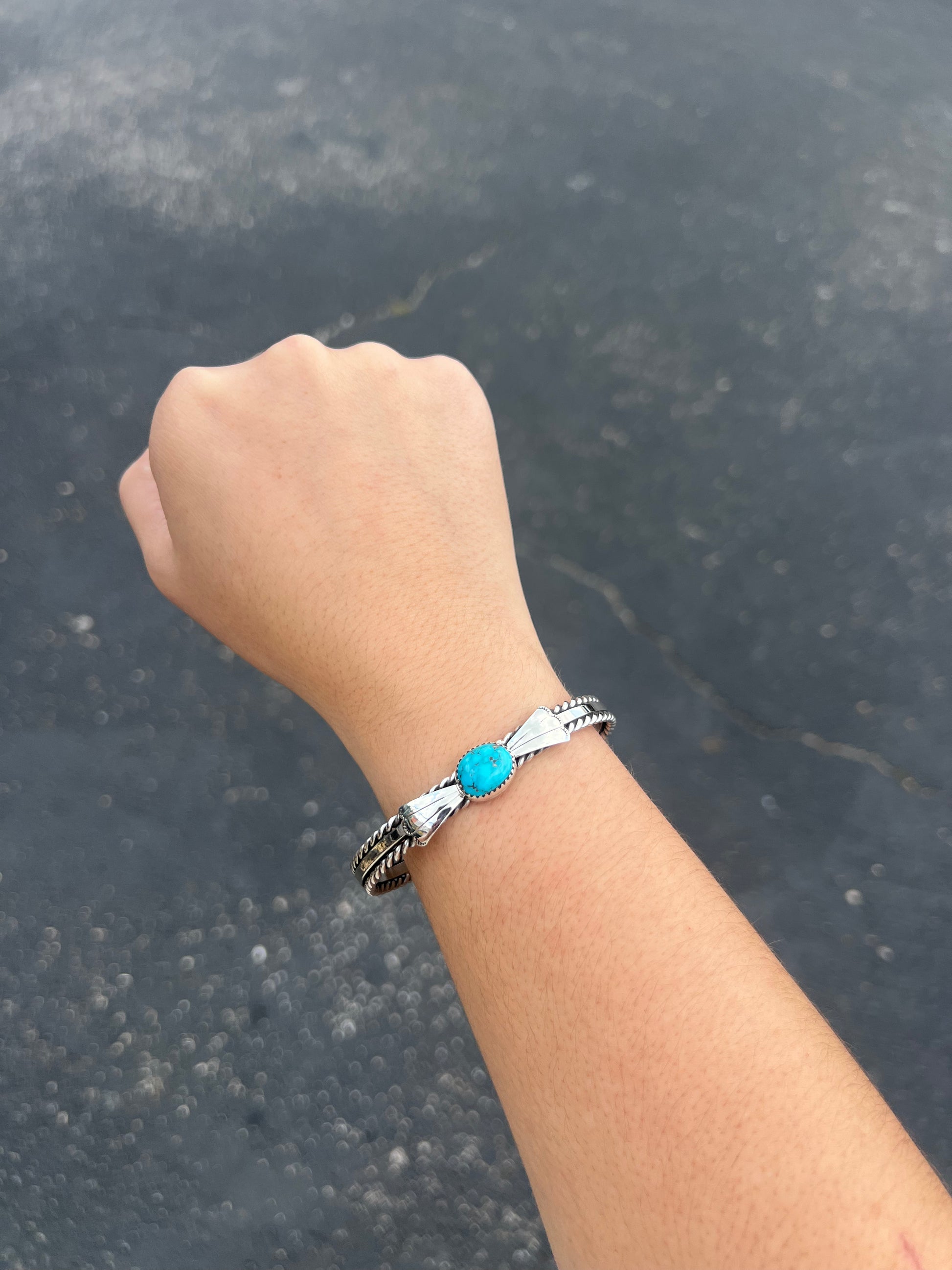 Kingman Turquoise Fan and Twist Wire Sterling Silver Cuff Bracelet