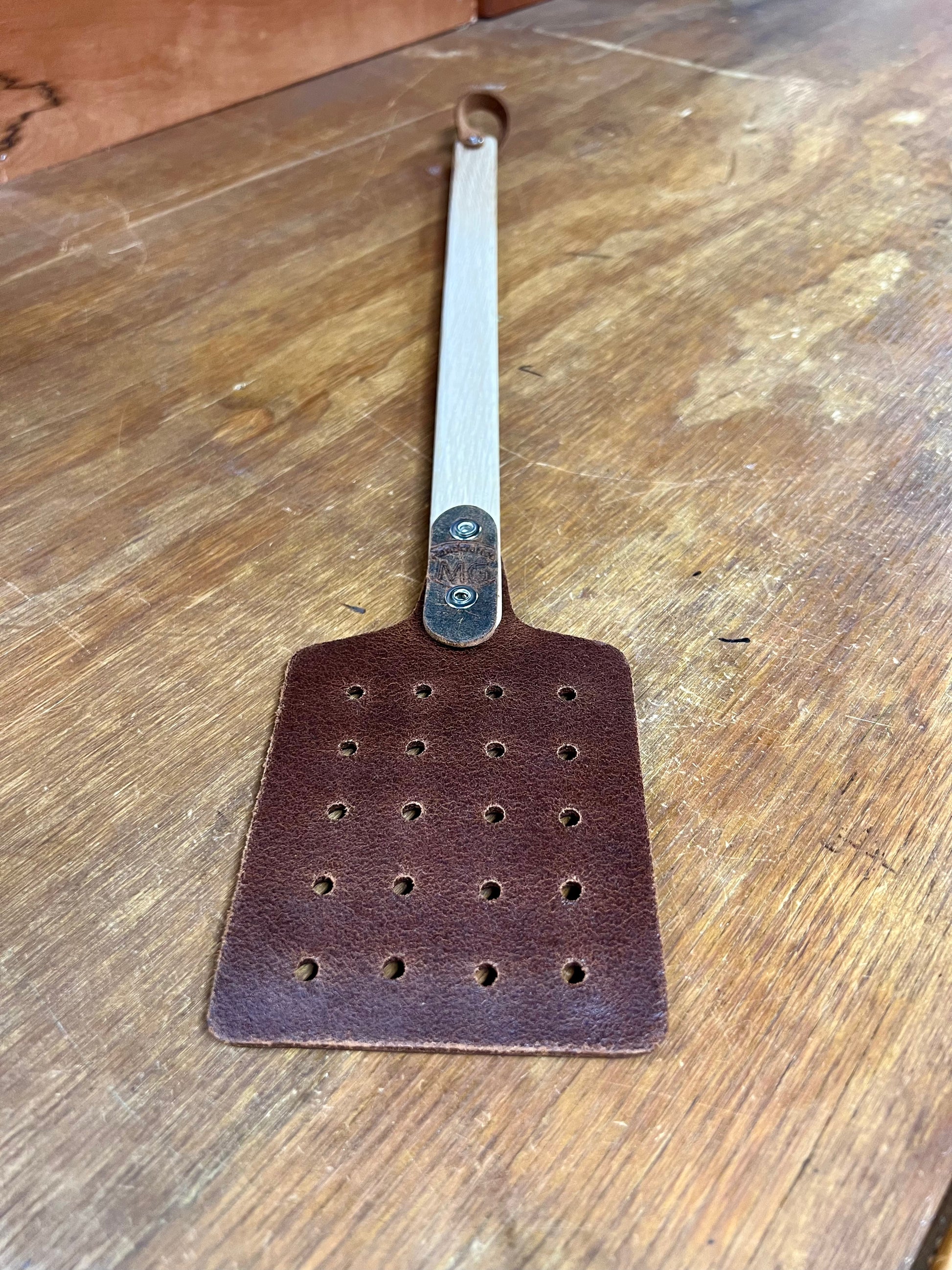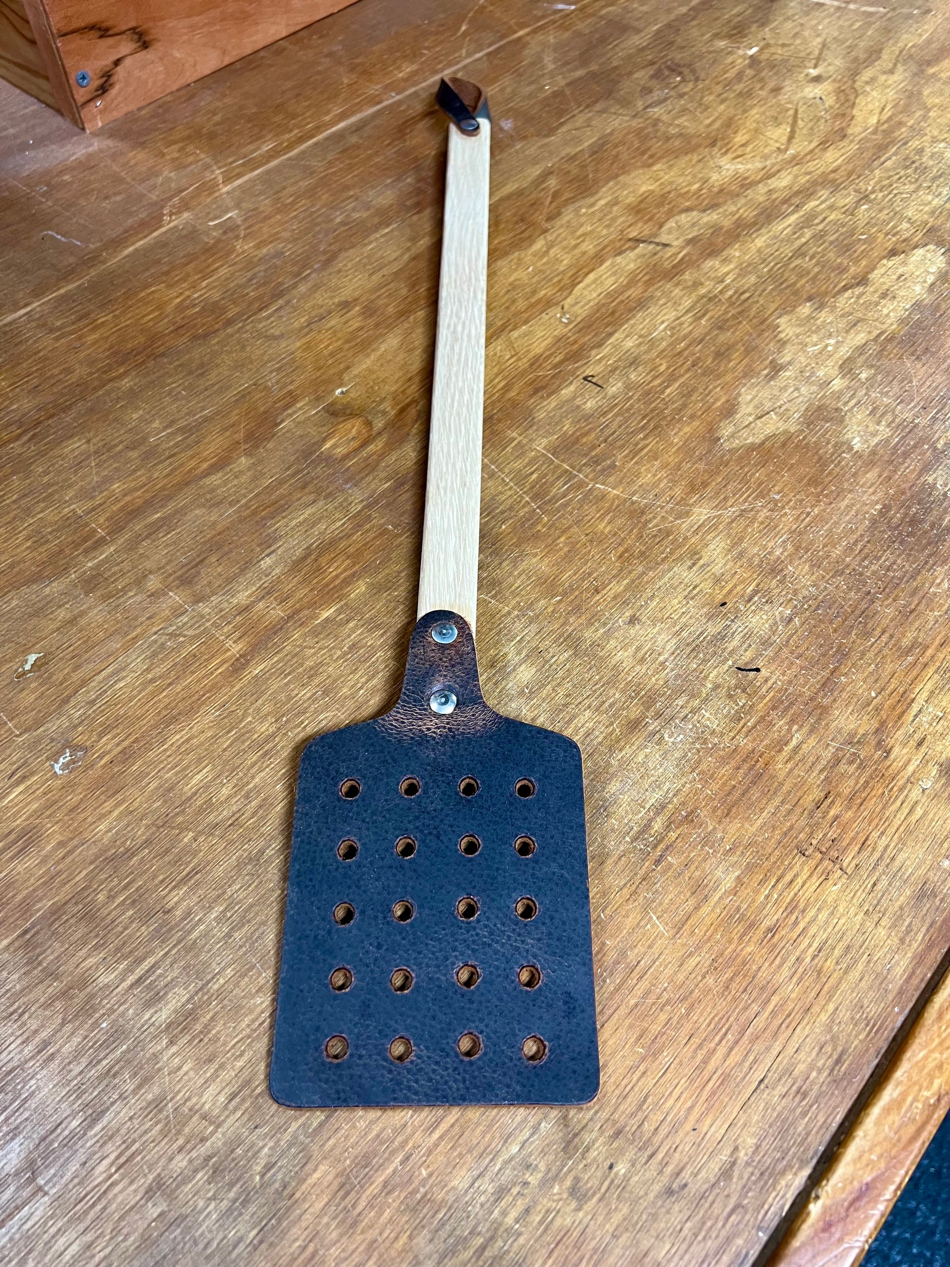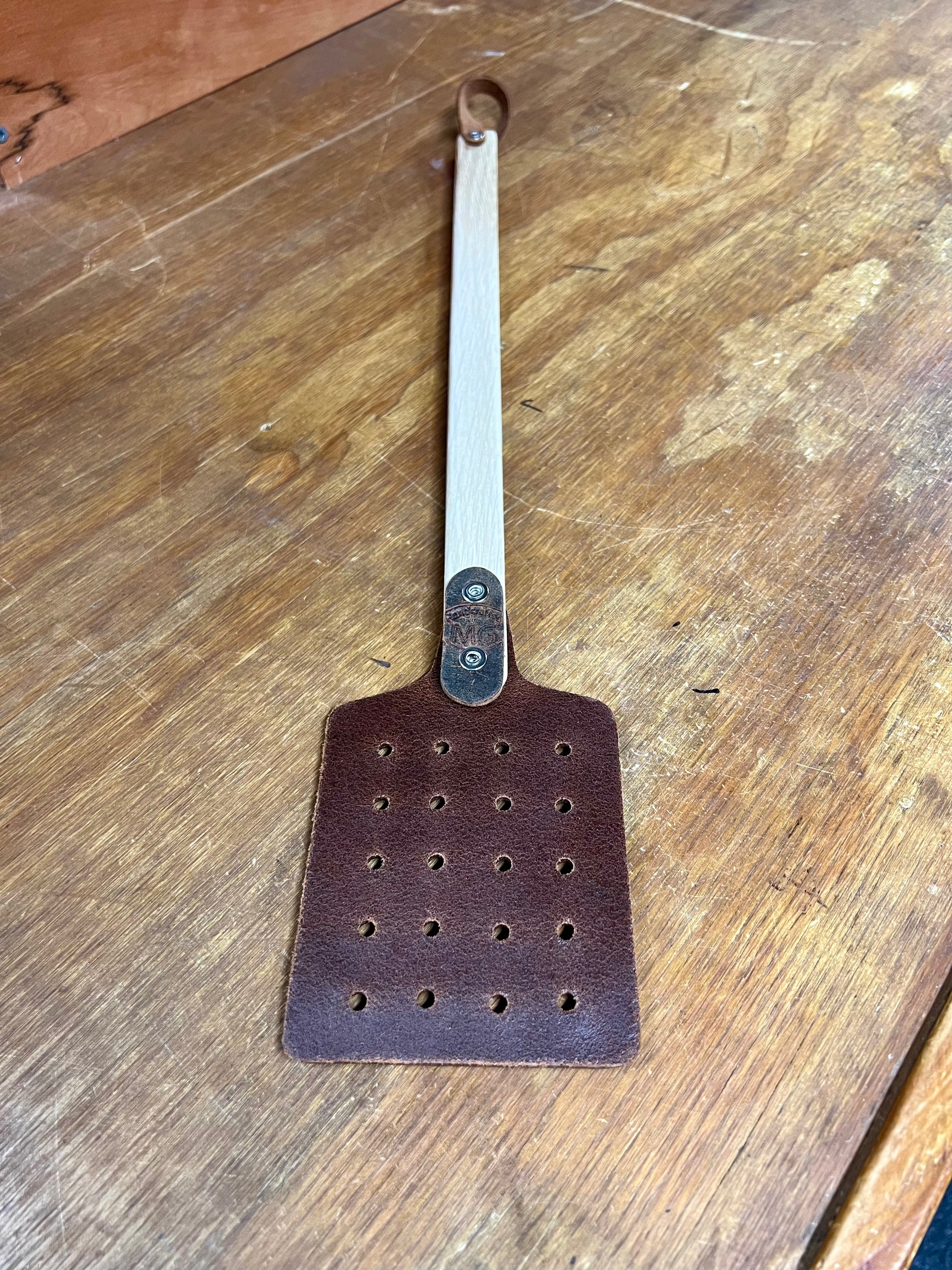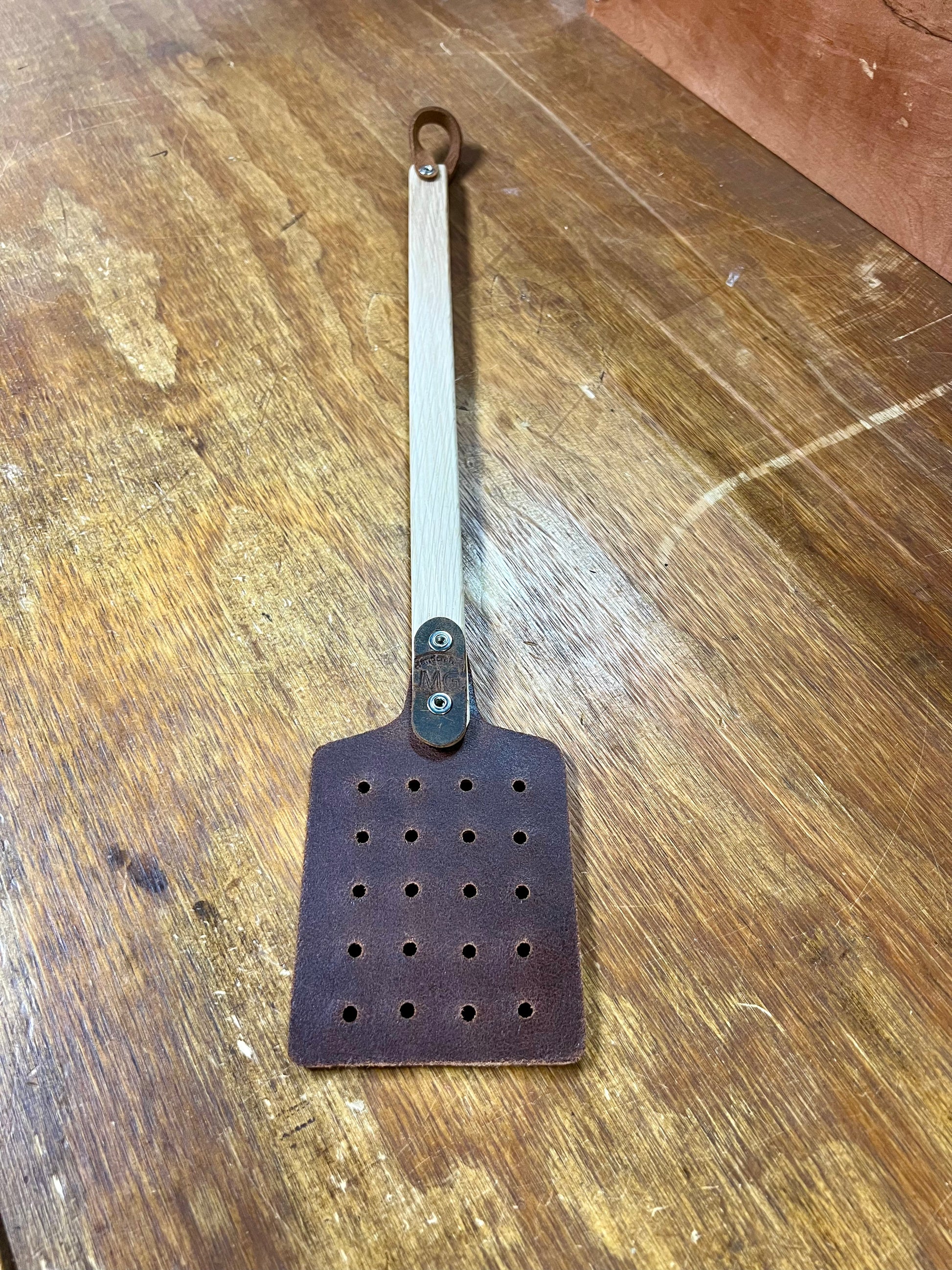 Local Amish Made Genuine Leather Fly Swatter with Wood Handle - Plain