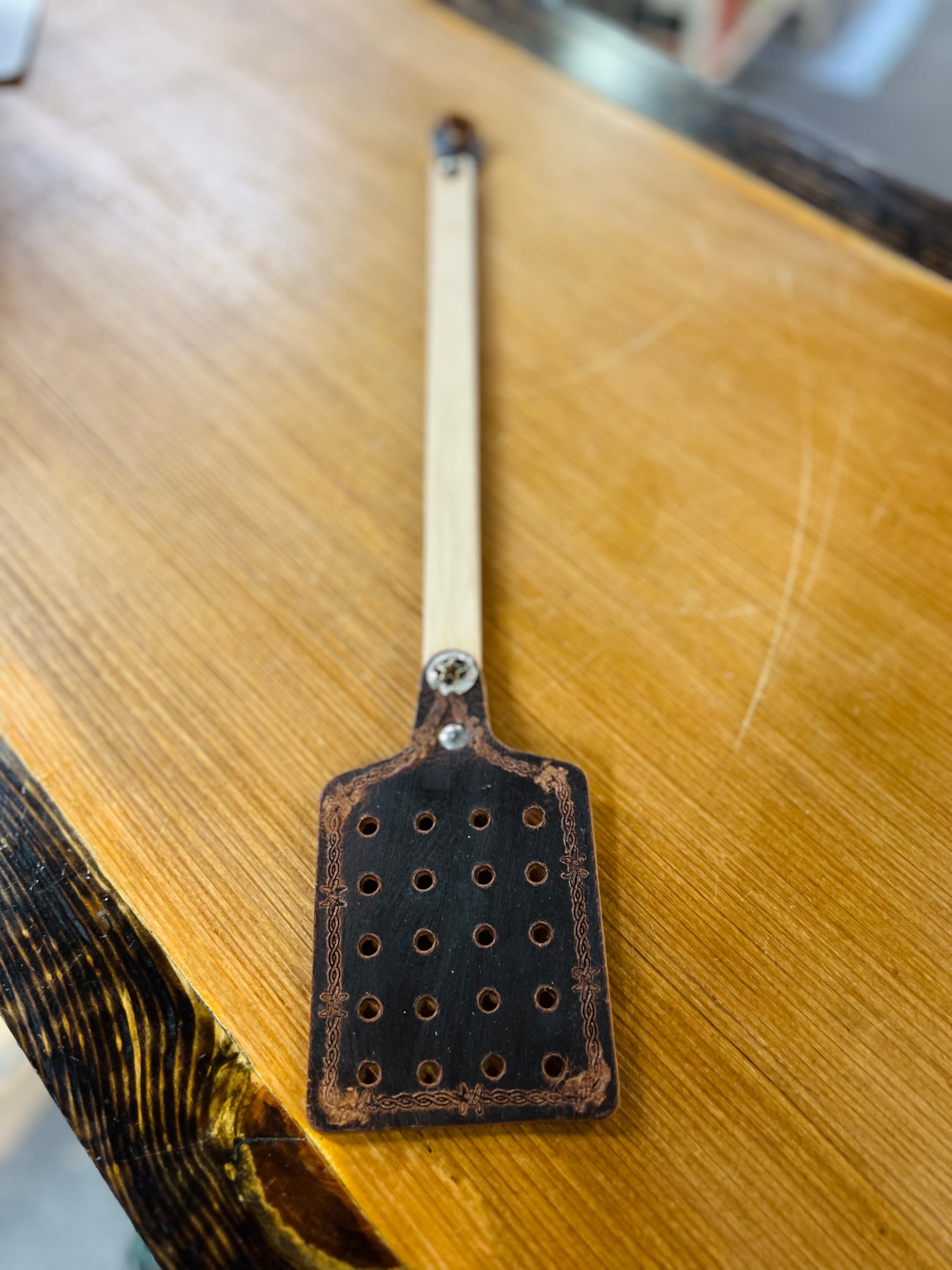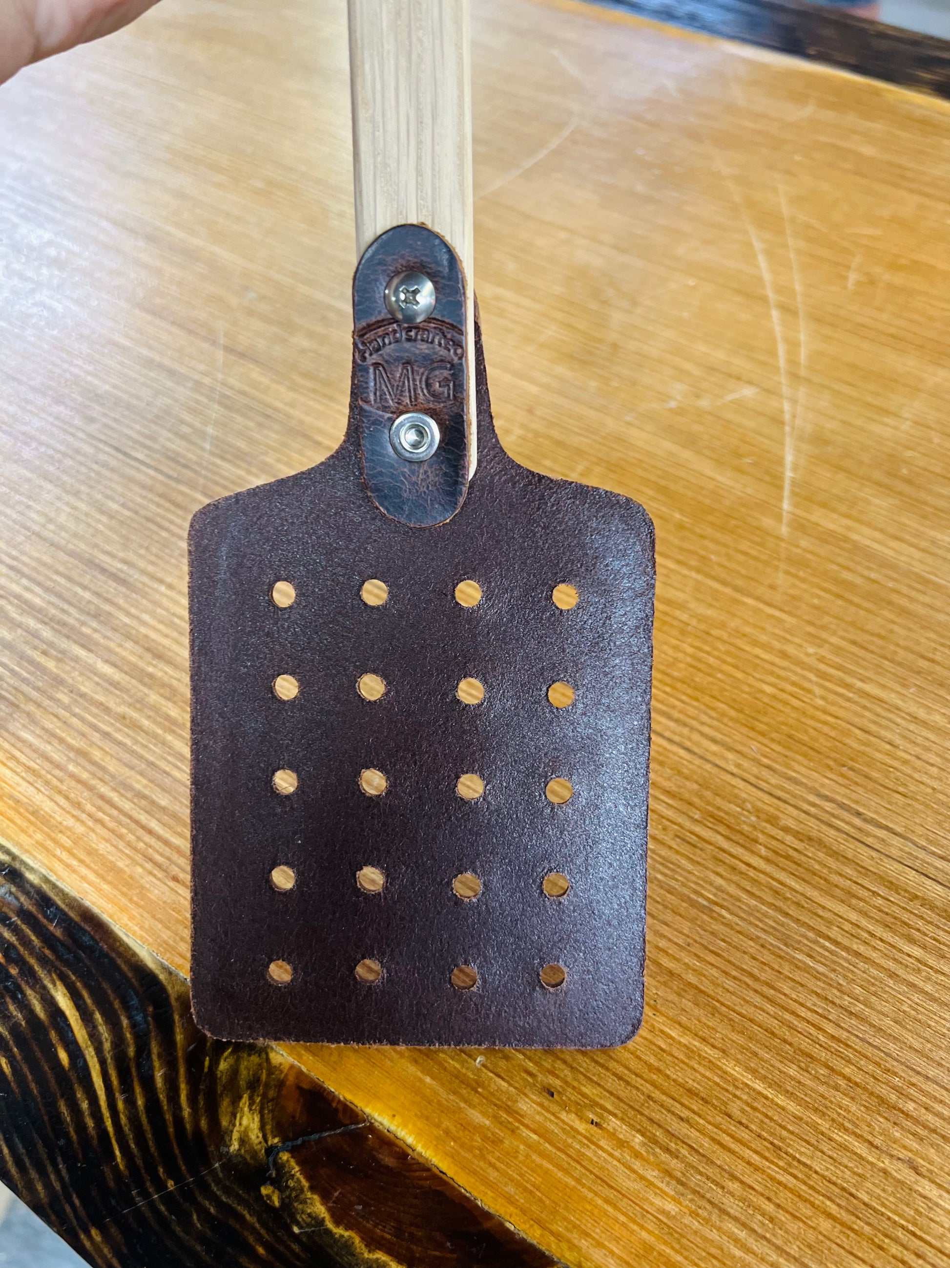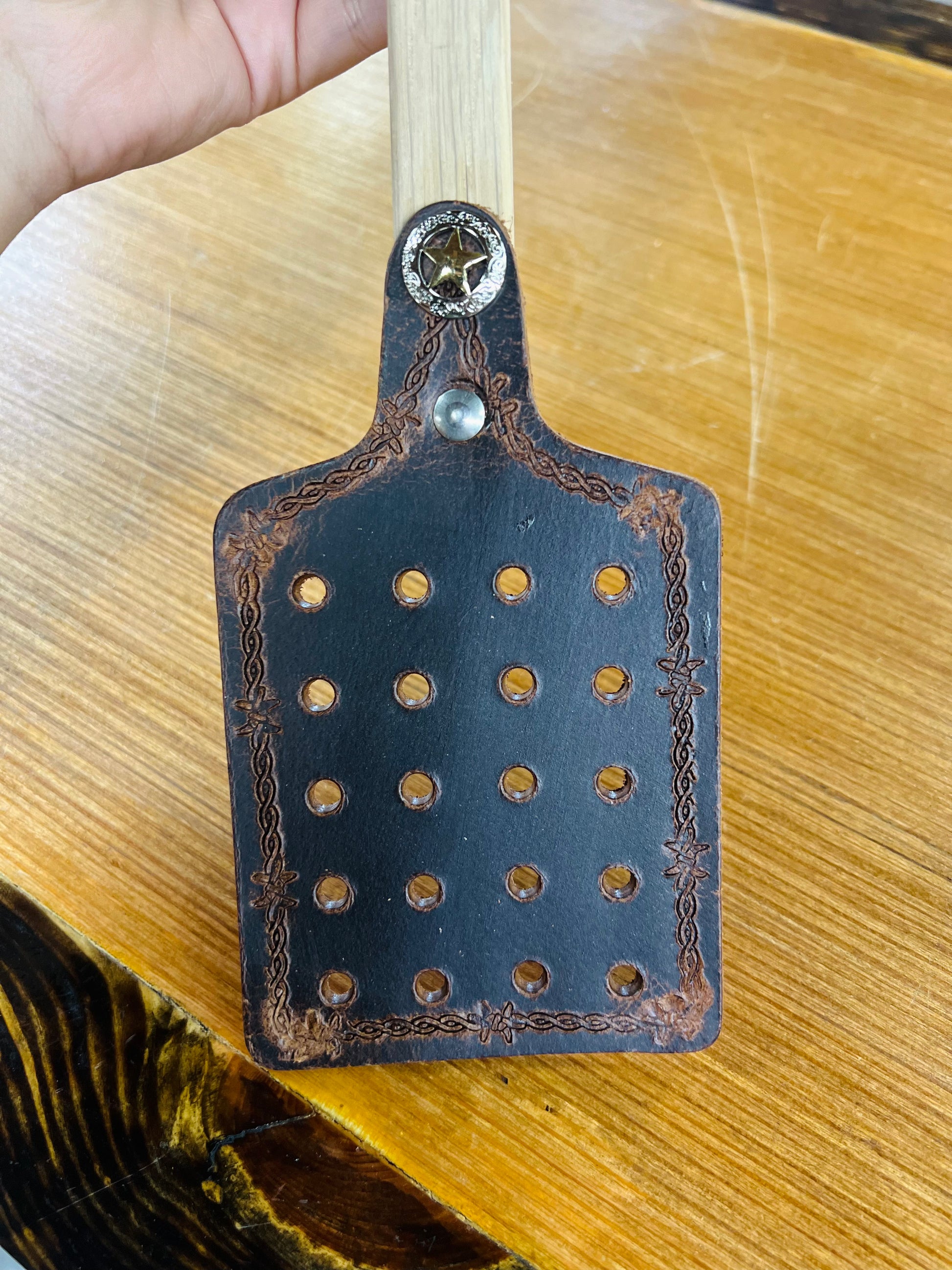 Local Amish Made Genuine Leather Fly Swatter with Wood Handle - Star and Barbwire