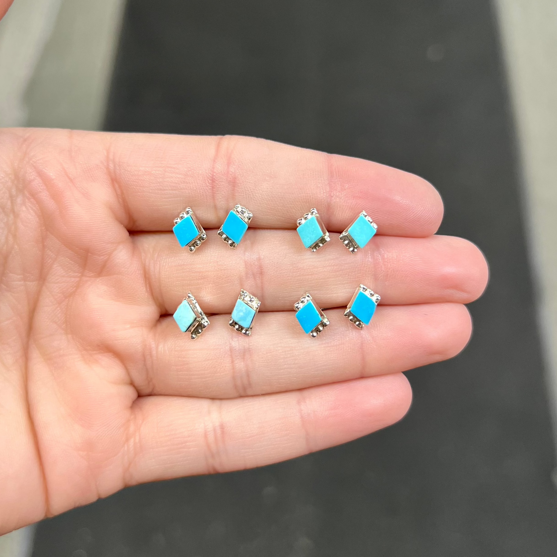 Mini Genuine Turquoise Diamond Beaded Sterling Silver Studs