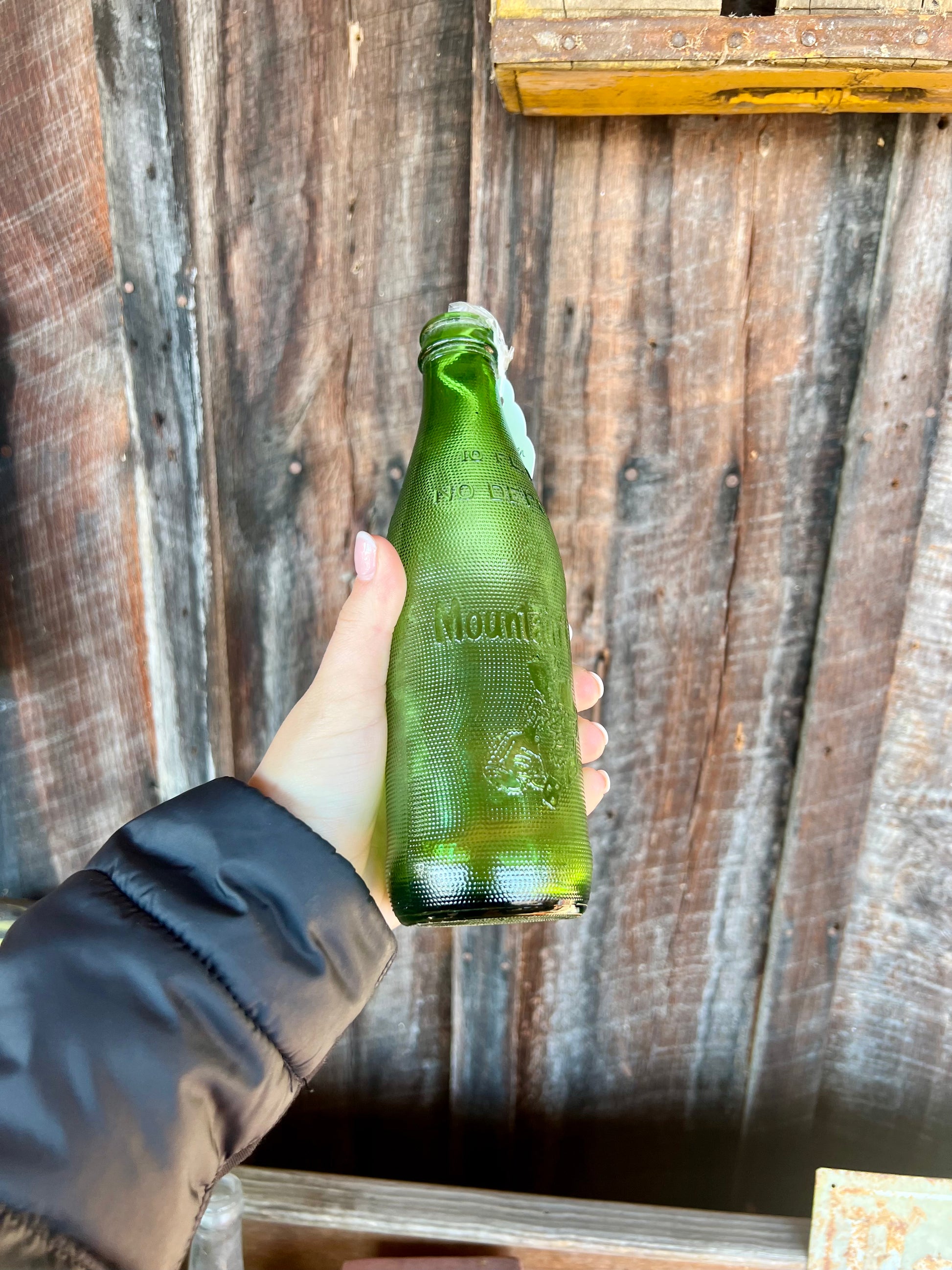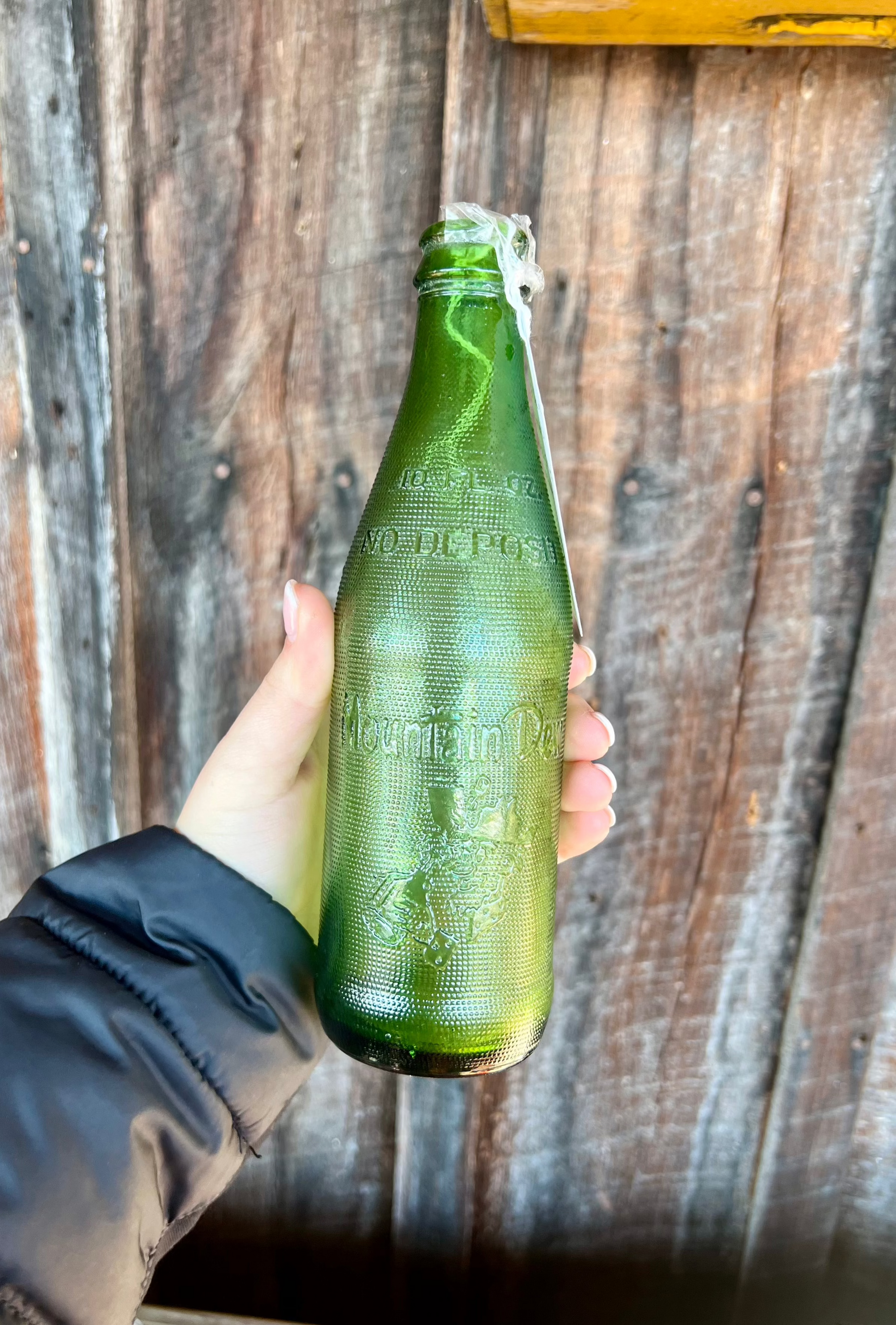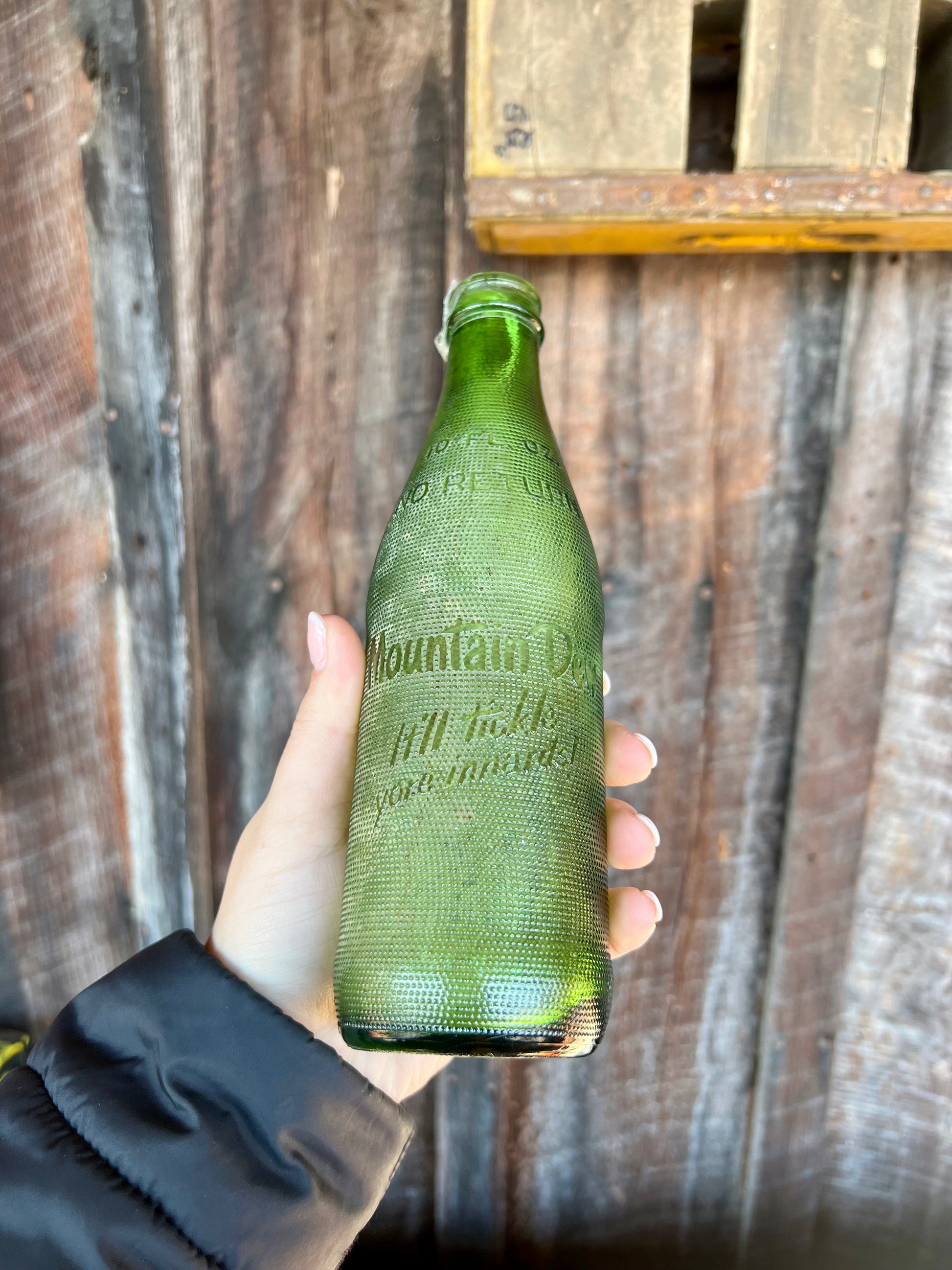 Mountain Dew Textured 10oz Hillbilly "It'll tickle yore innards!" Glass Bottle