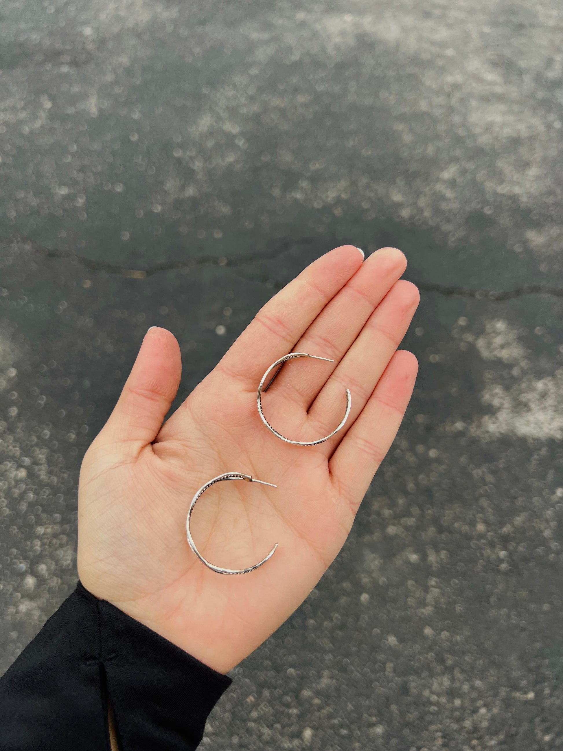 -Authentic Native American Handmade Sterling Silver Hoop Earrings