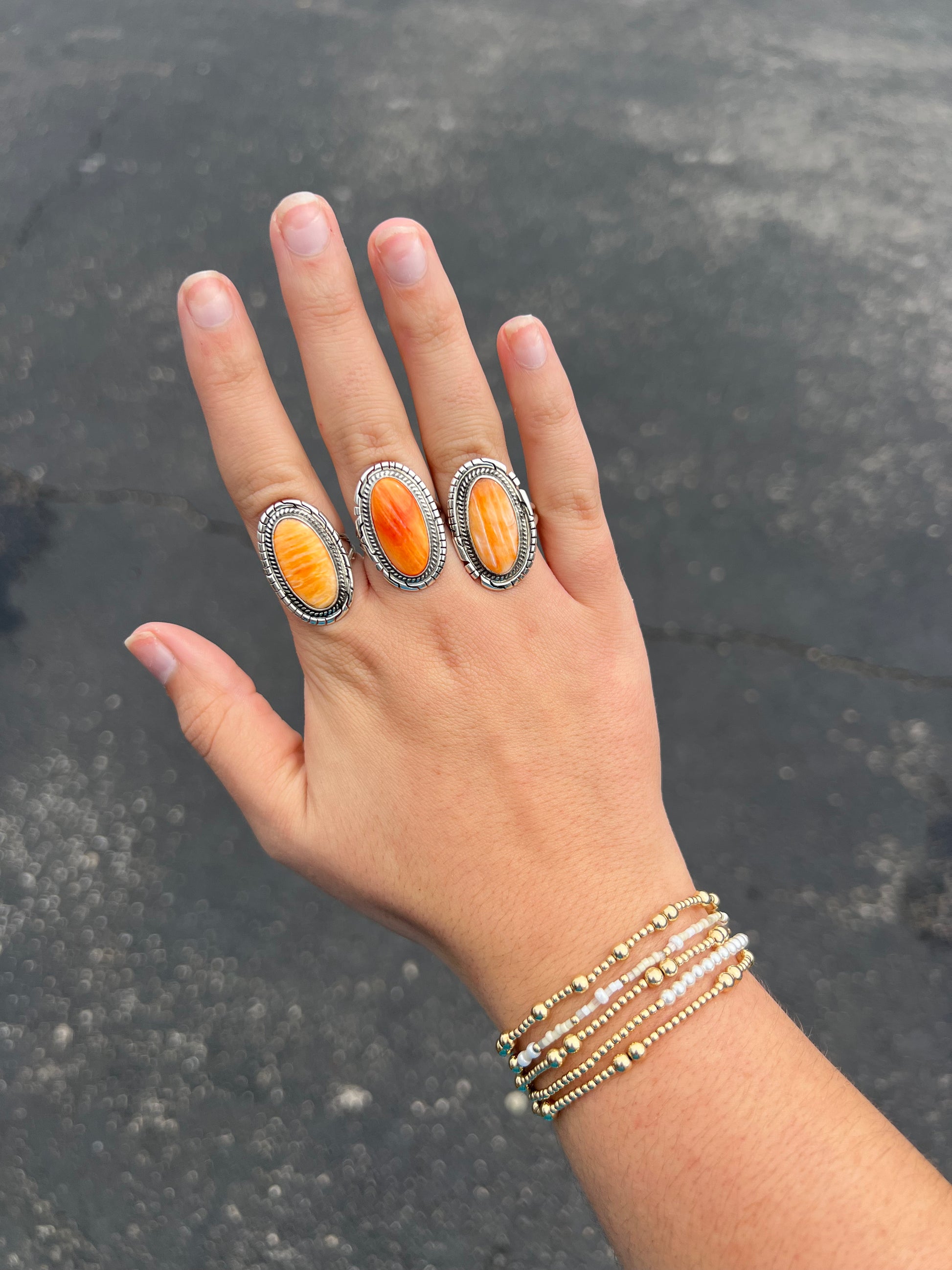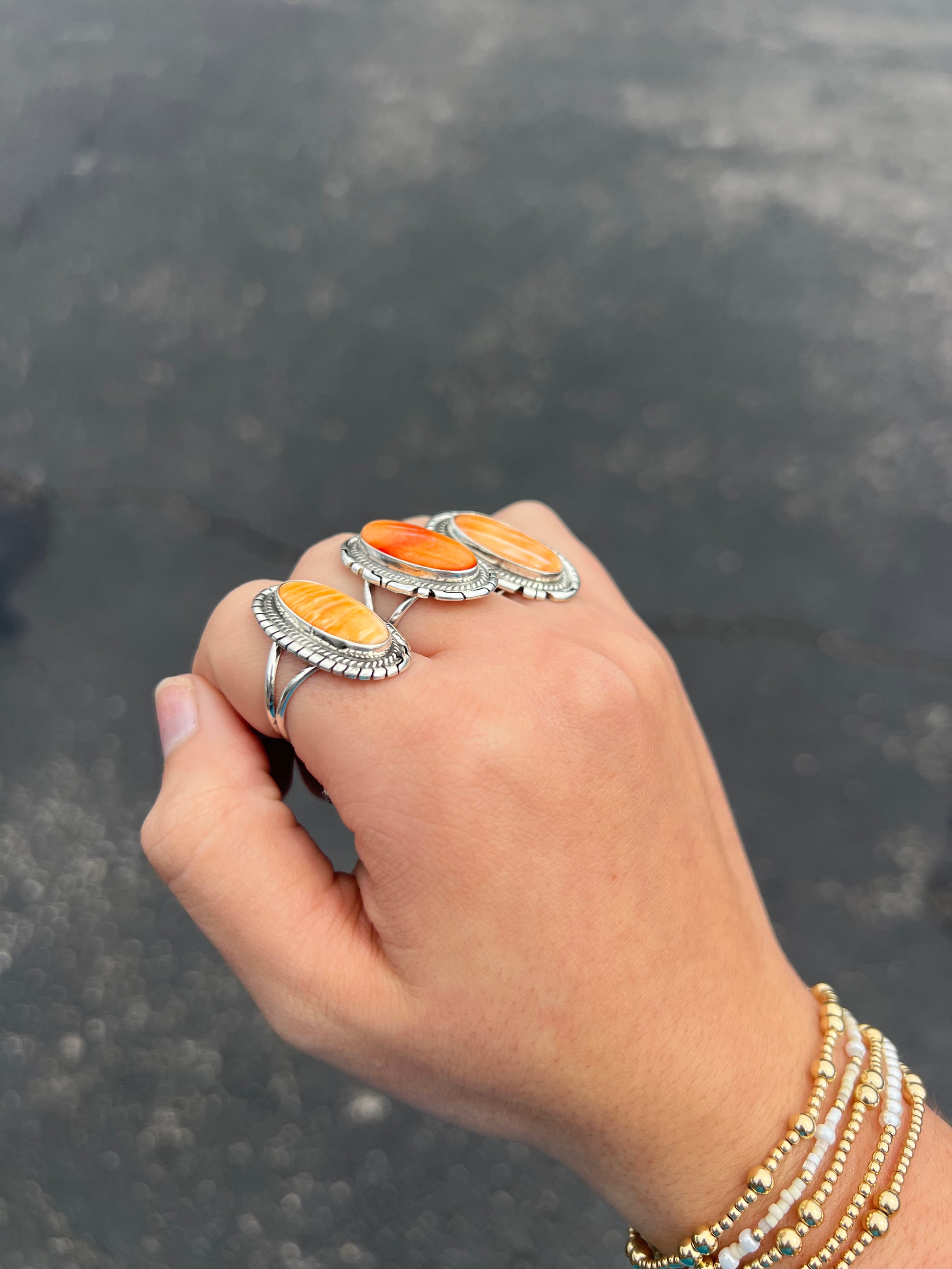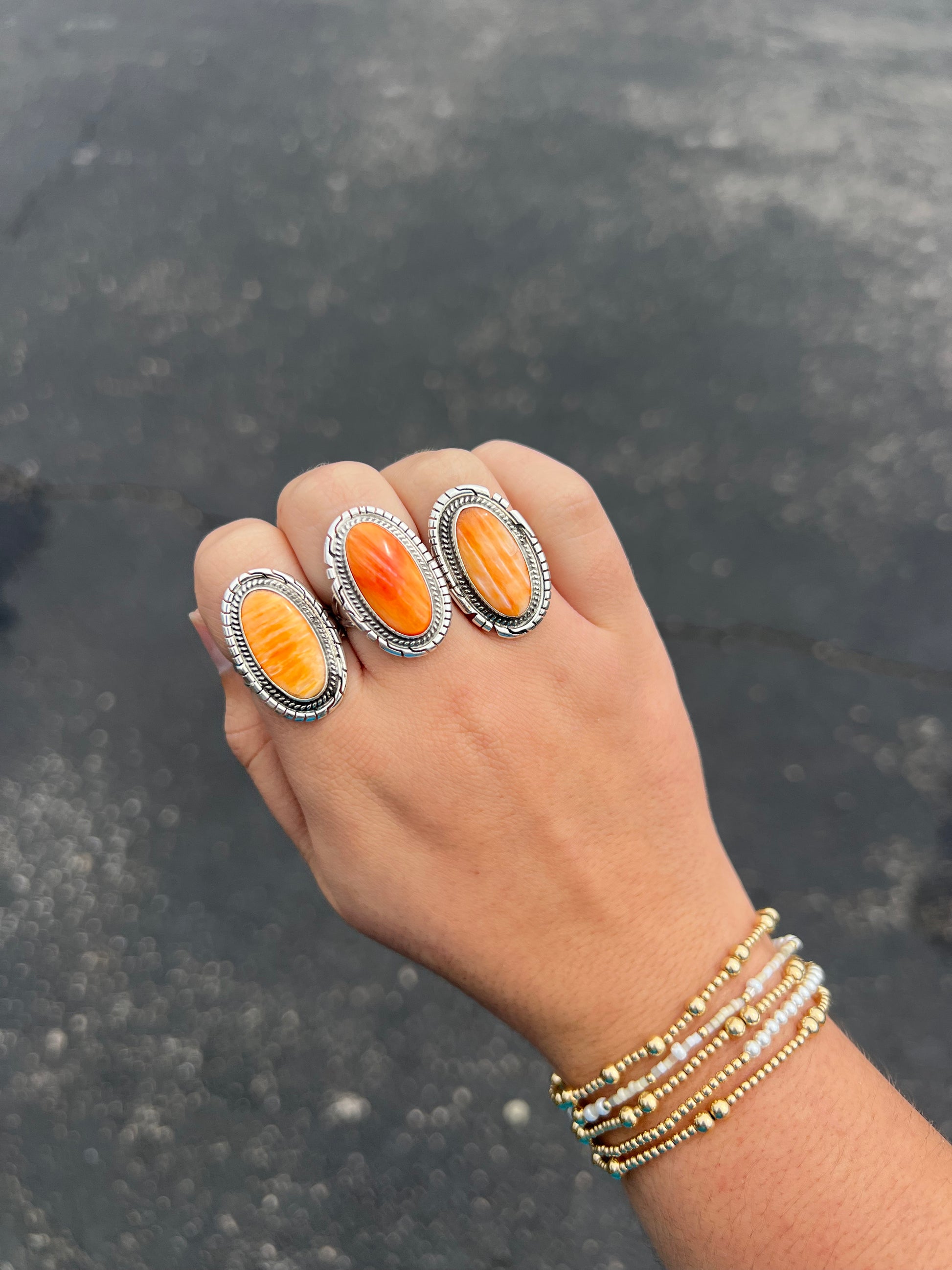Orange Spiny Oyster Oval Sterling Silver Statement Ring