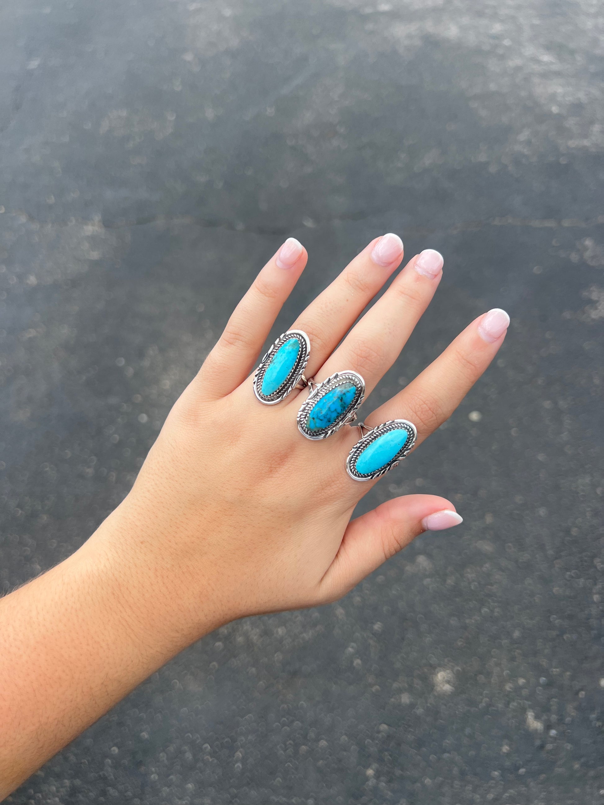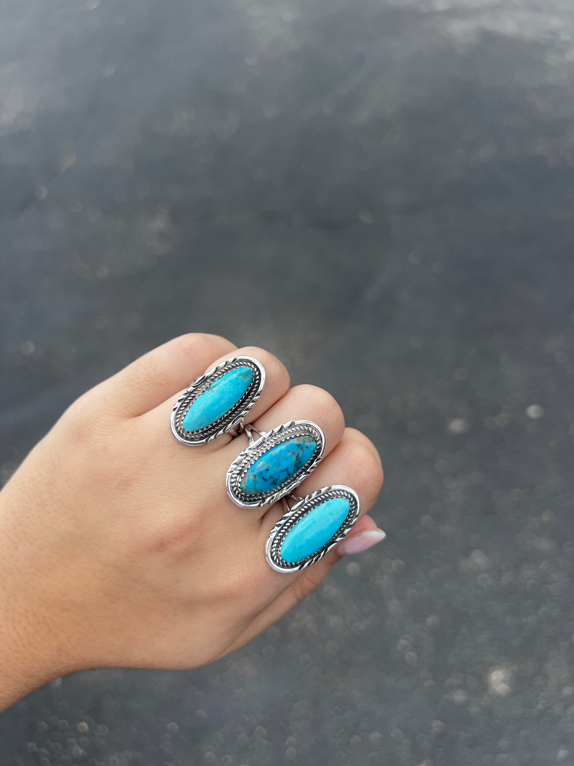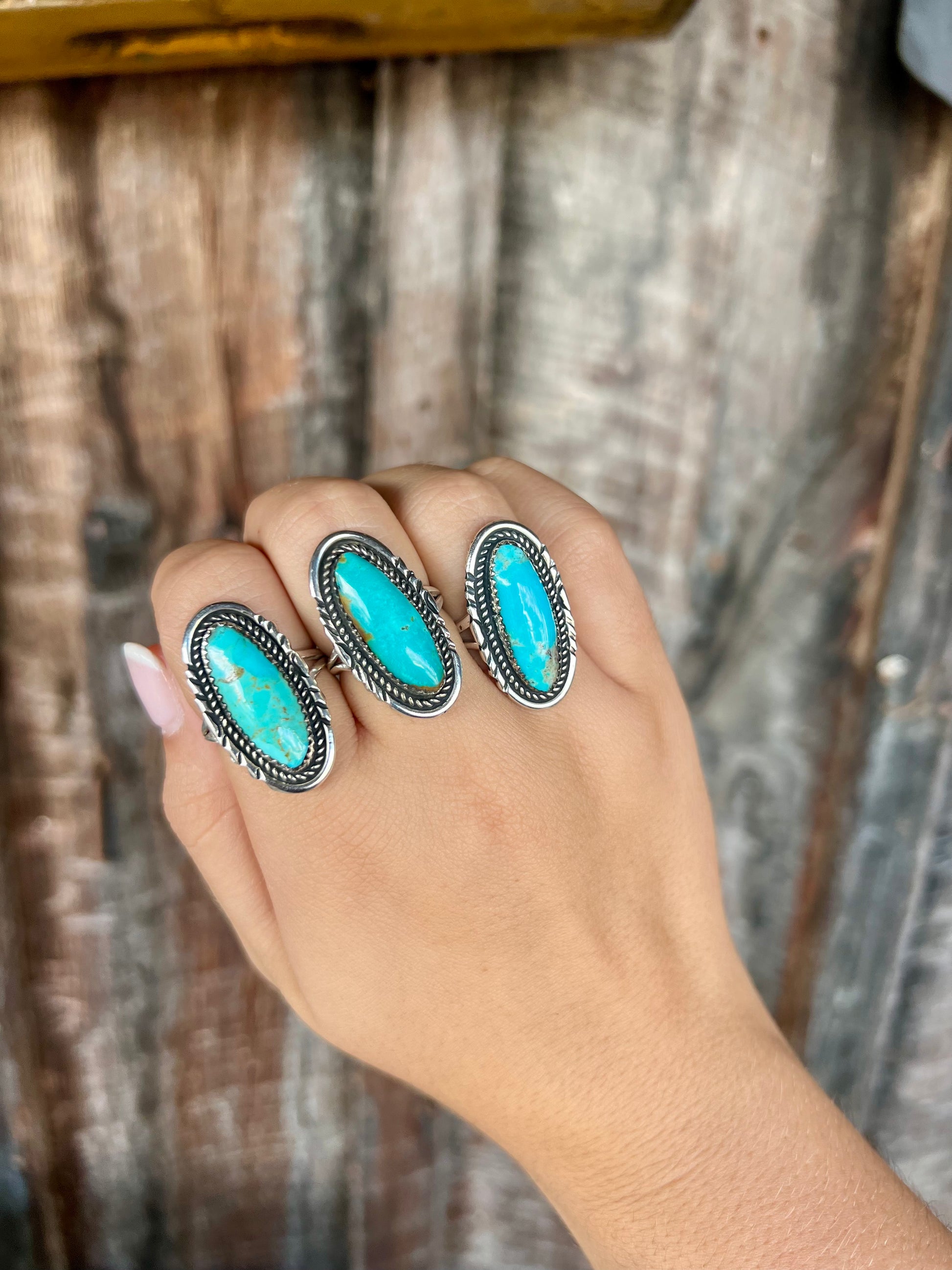 -Native American handmade Kingman Turquoise and Sterling Silver Ring