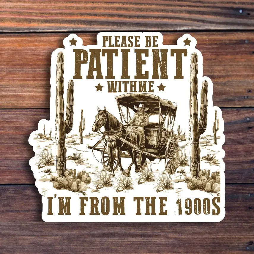 This Please Be Patient With Me, I'm From The 1900s Sticker is perfect for laptops, notebooks, phones, tablets, mirrors, water bottles, tumblers, planners, journals, cars, and more
