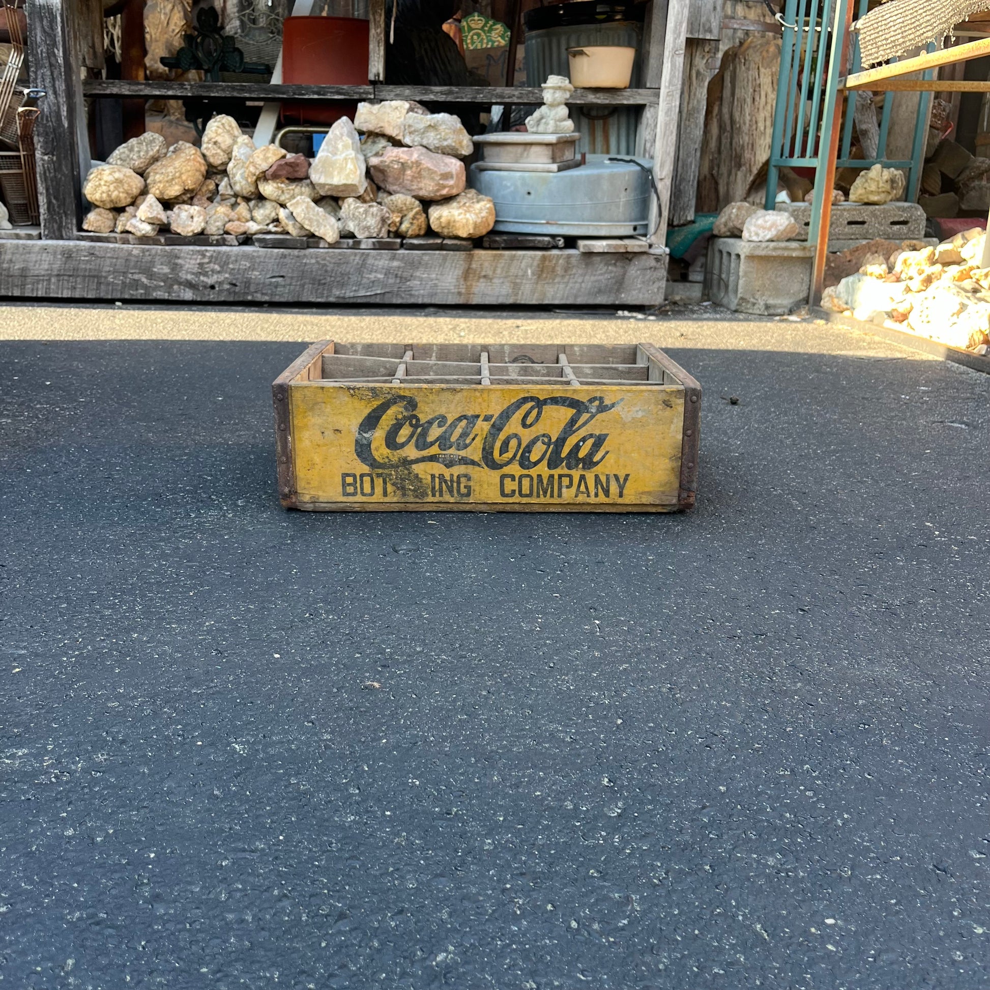RARE Vintage Yellow Coca Cola Bottling Company 1950s Wood Crate
