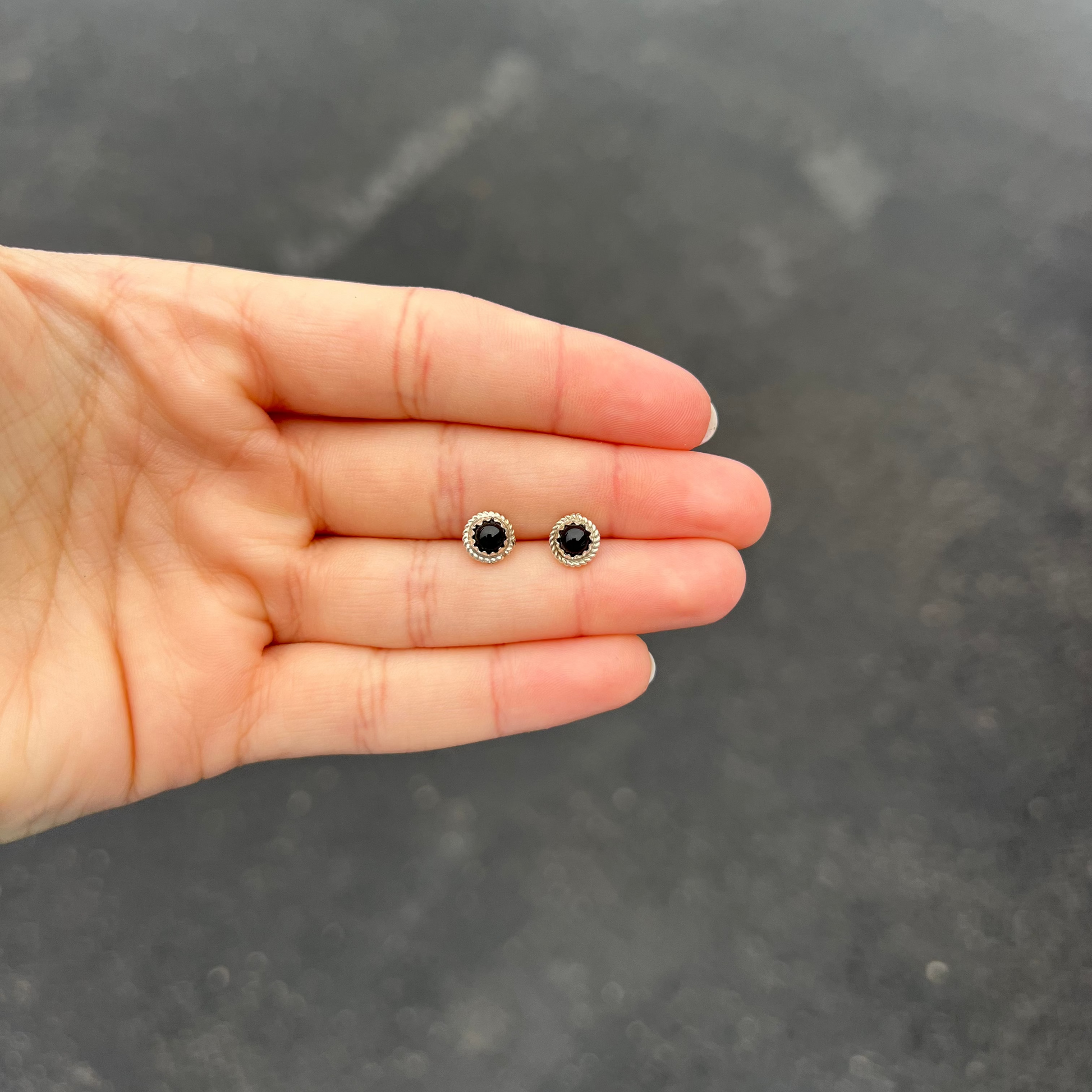 Round Black Onyx Sterling Silver Mini Studs