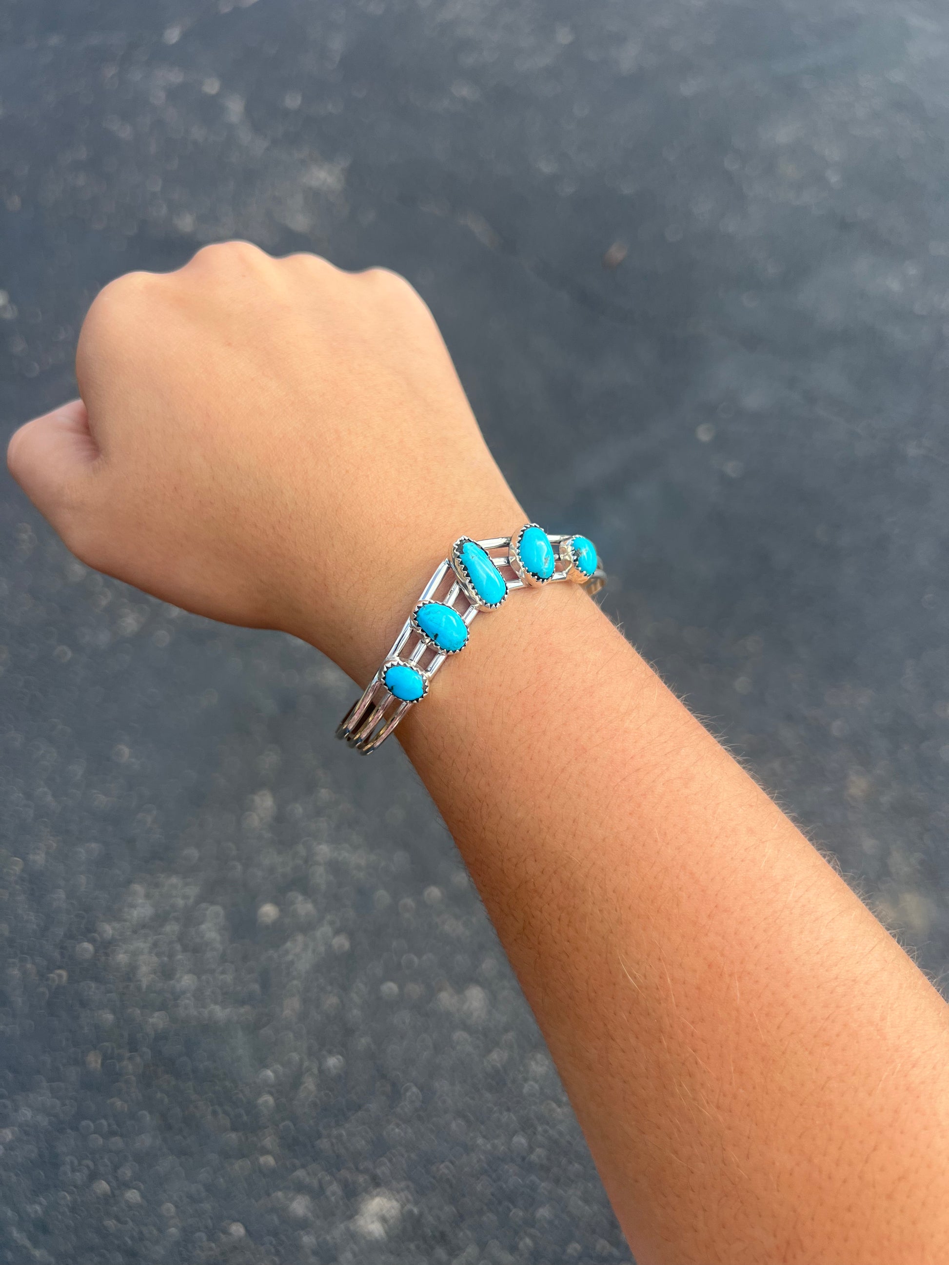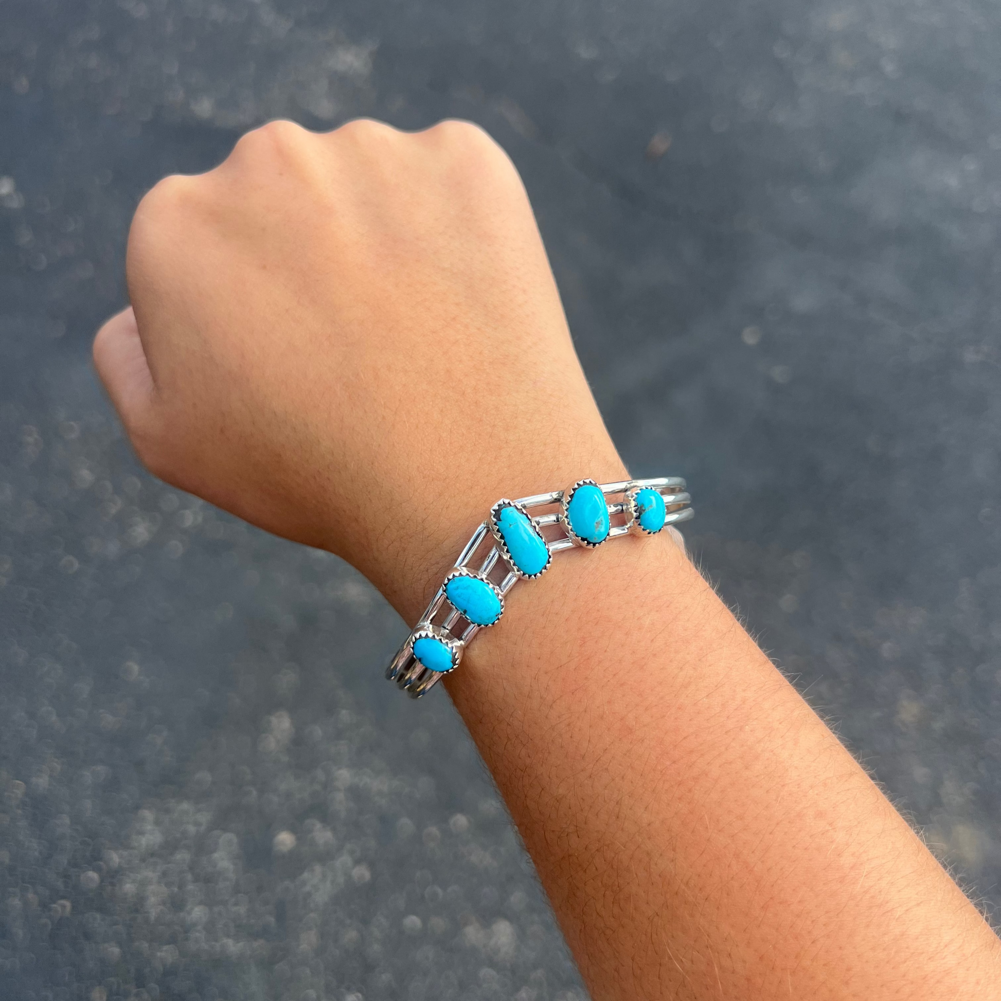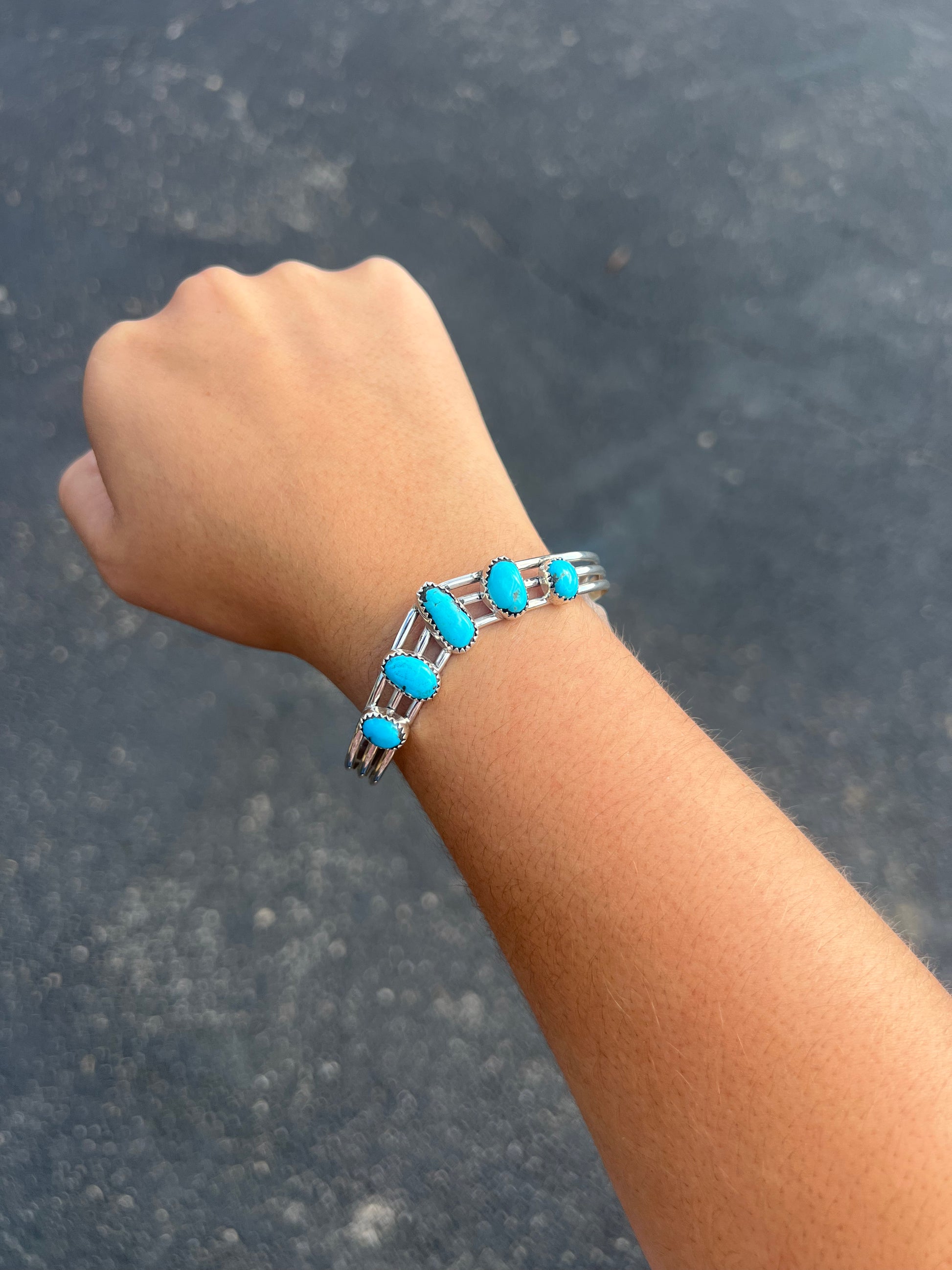 Sleeping Beauty 5 Stone Sterling Silver V Sweater Cuff Bracelet