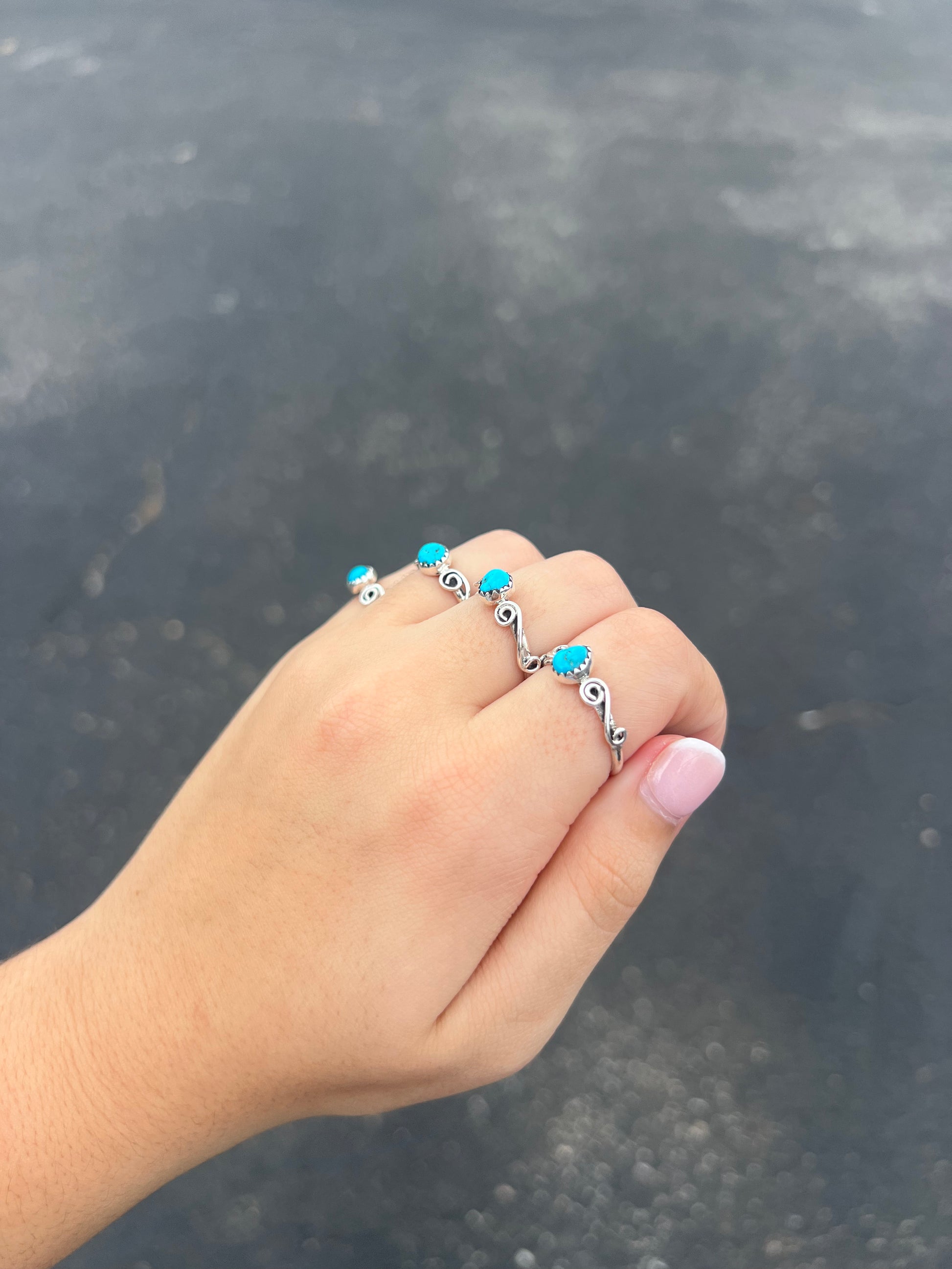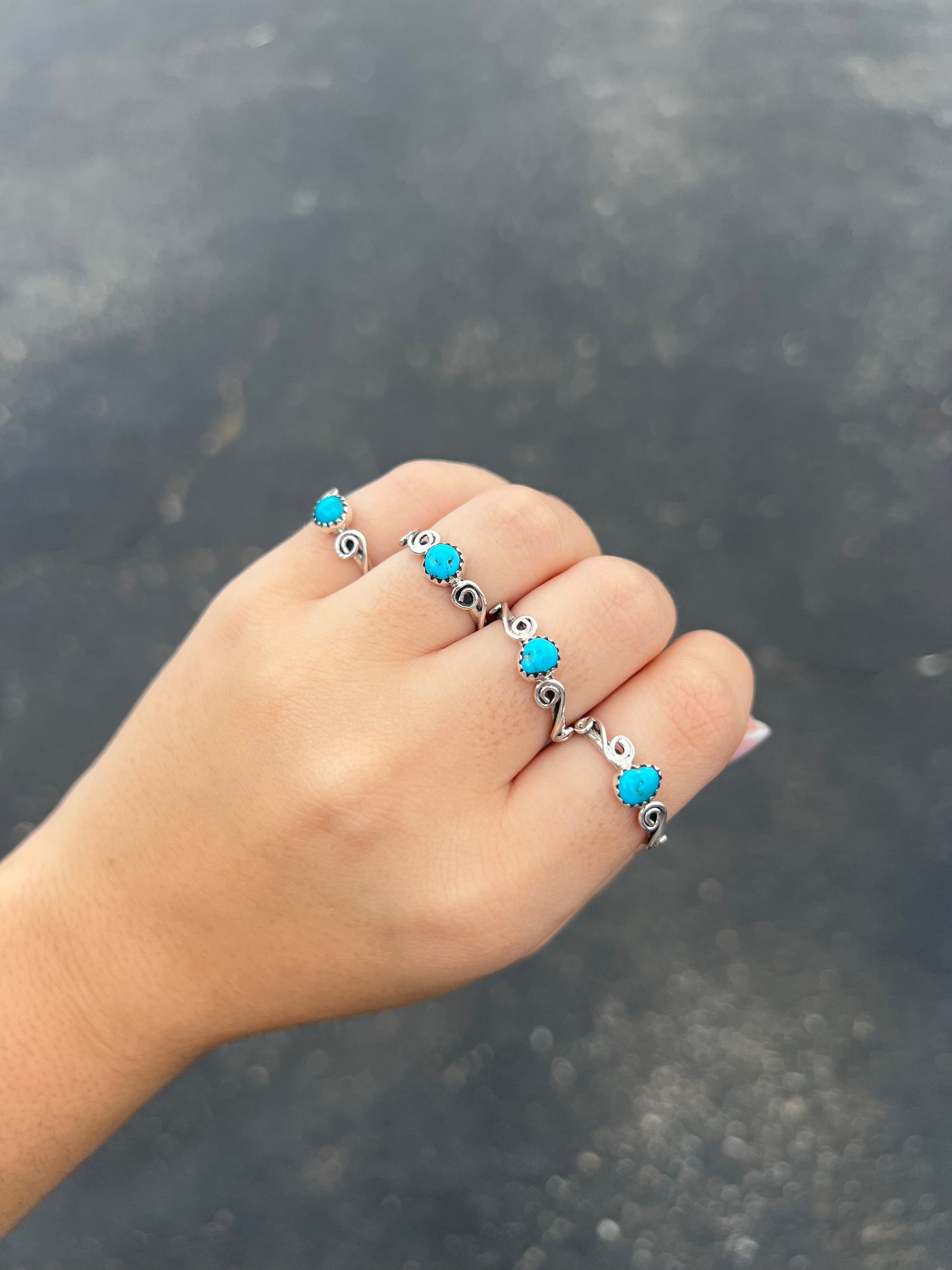 Sleeping Beauty Turquoise and Swirl Sterling Silver Ring