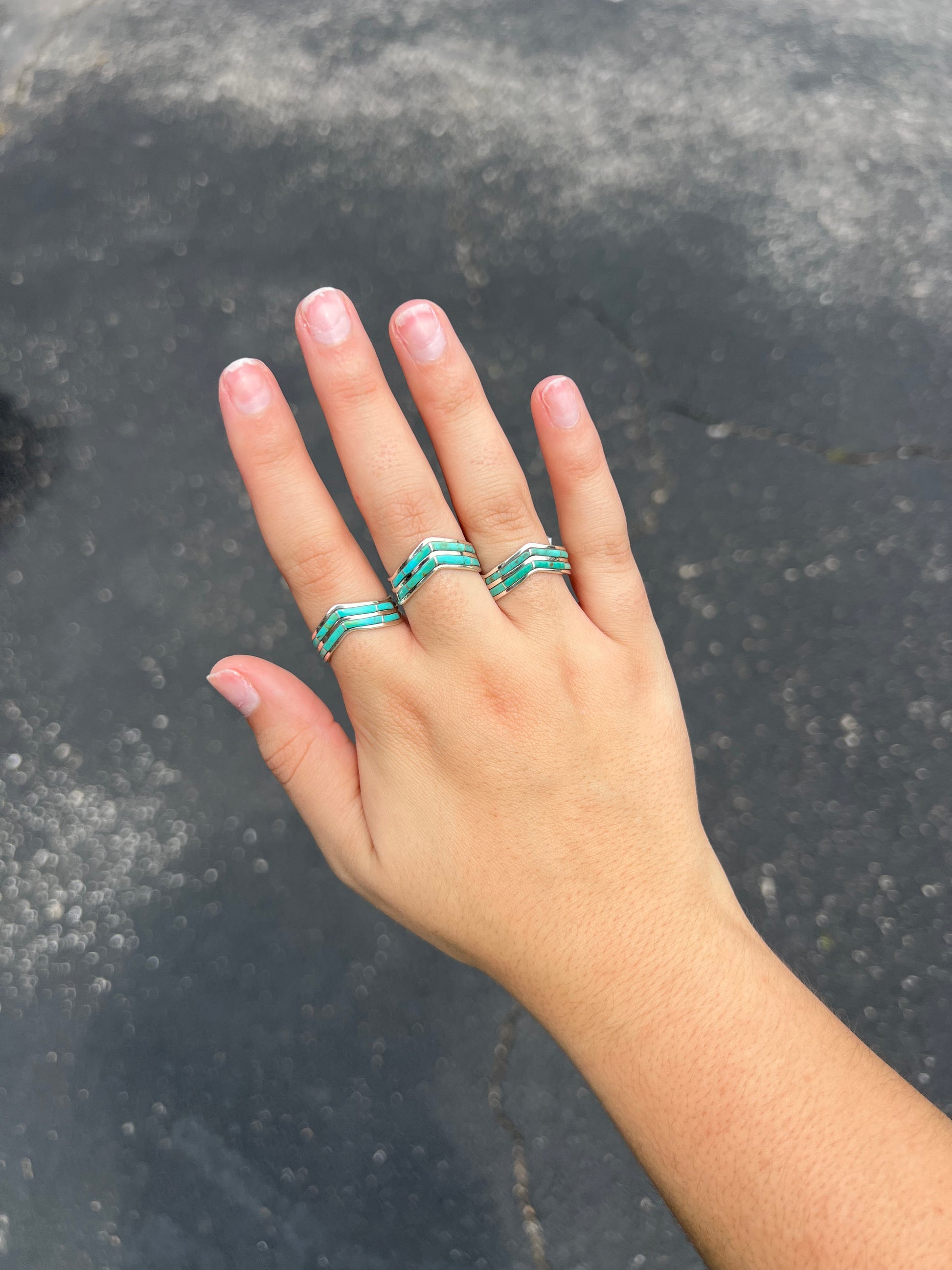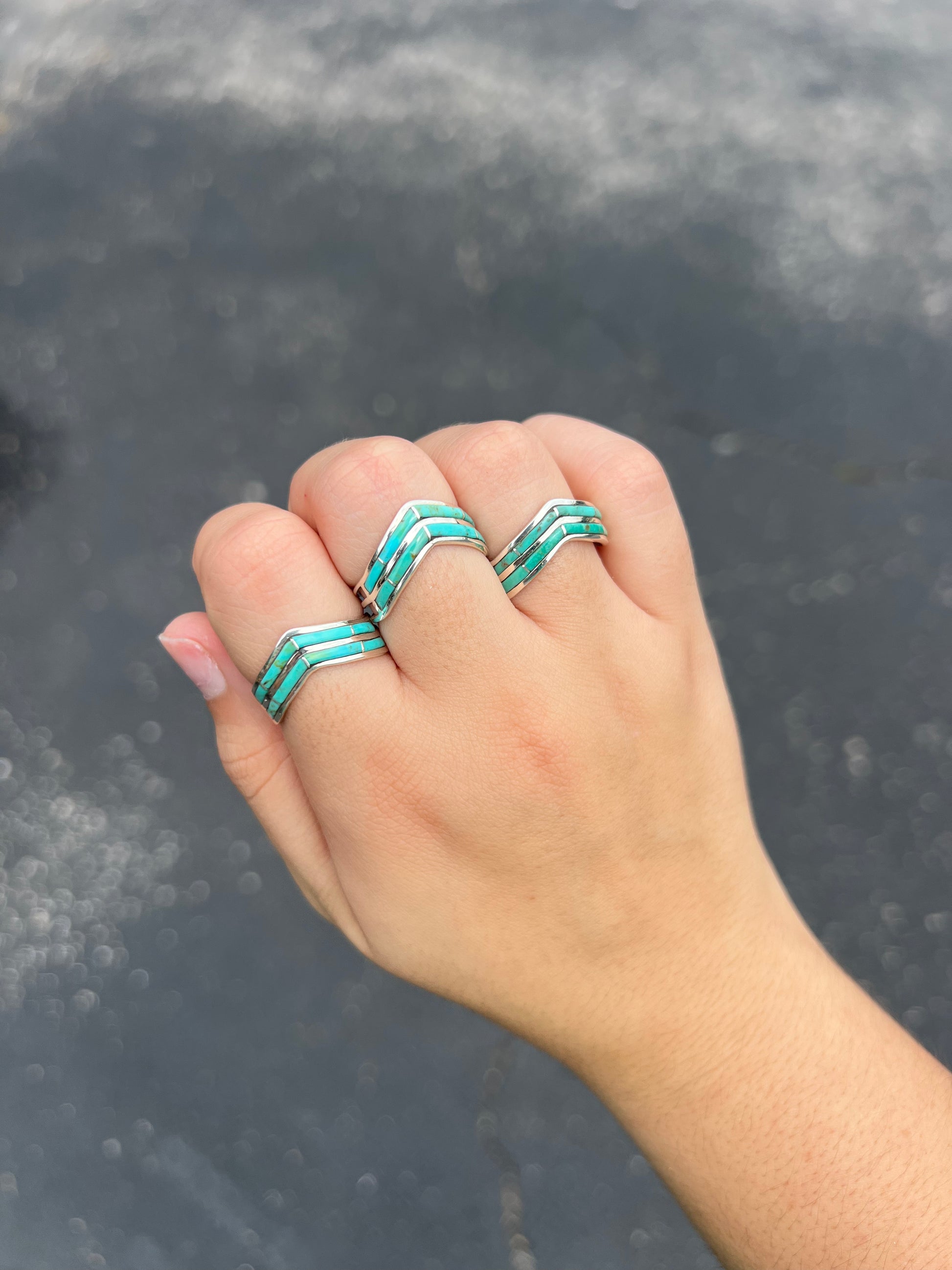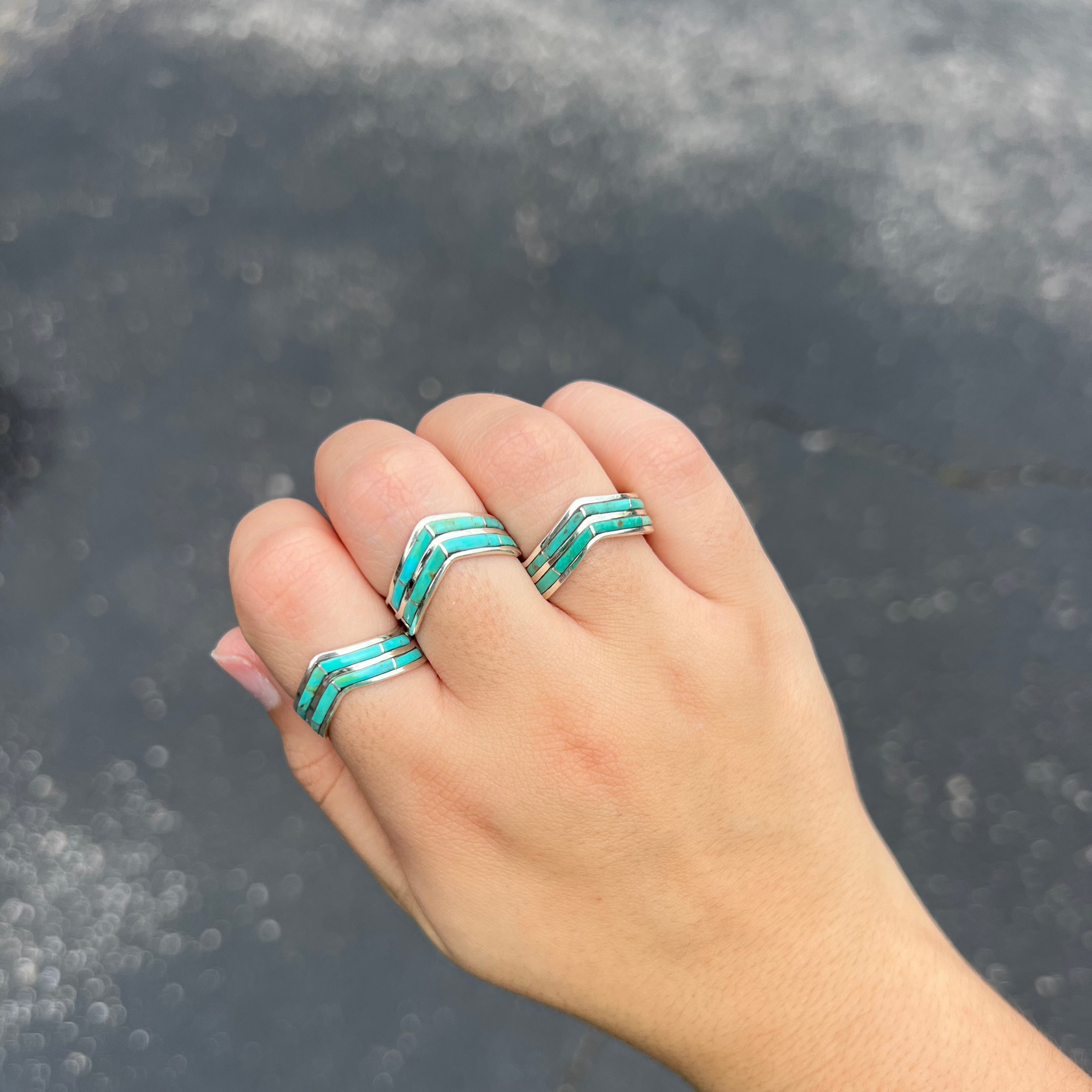 Sonoran Turquoise 2 Row Inlay Sterling Silver V Ring
