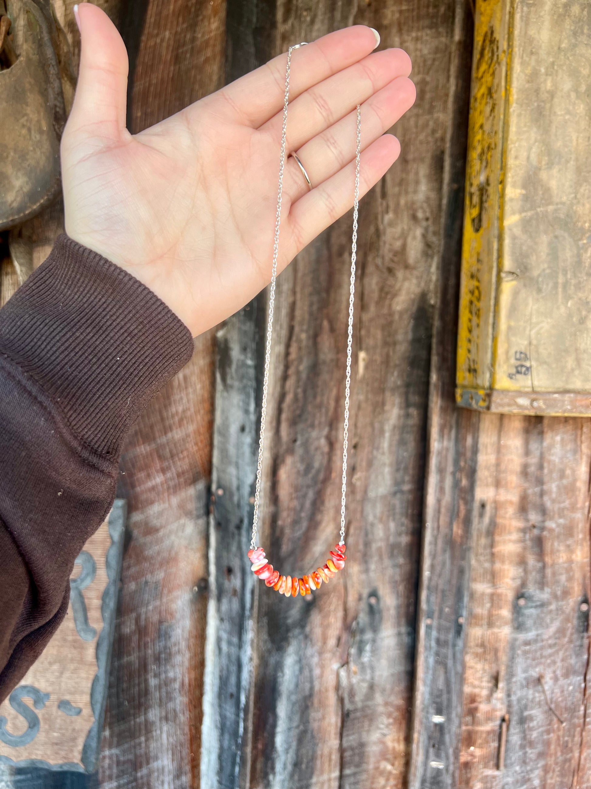 -Authentic Native American Handmade Genuine Spiny Oyster Sterling Silver Necklace