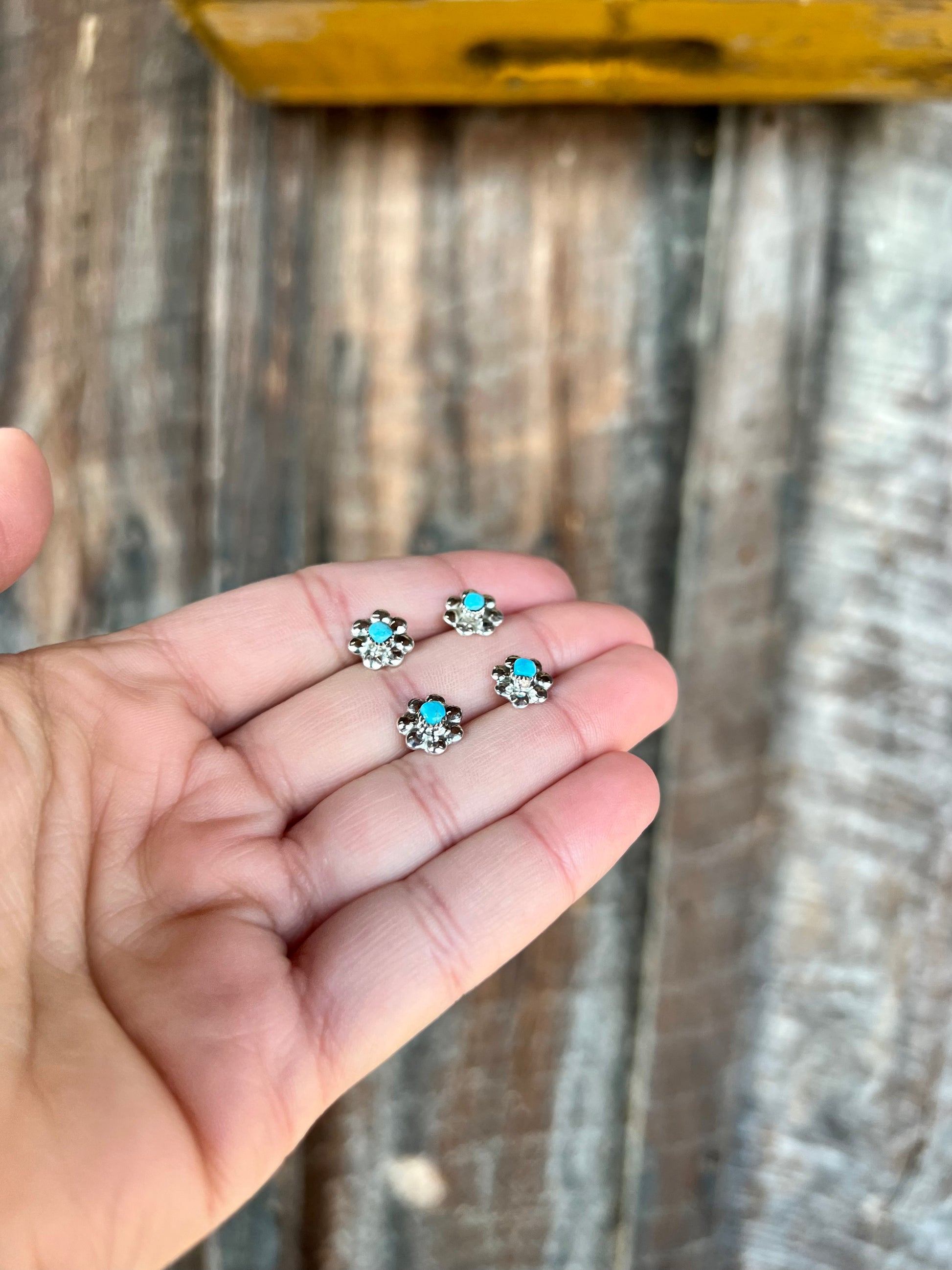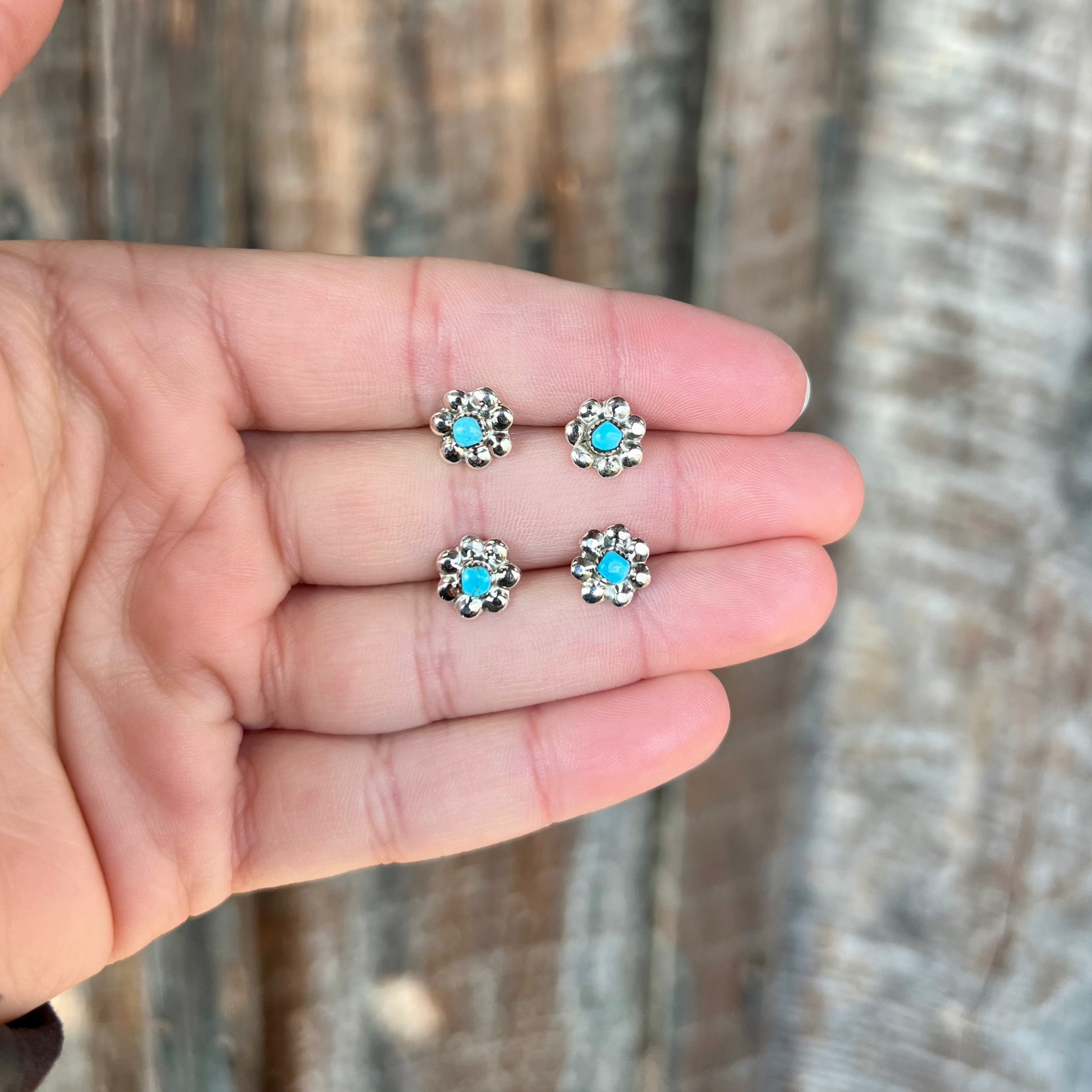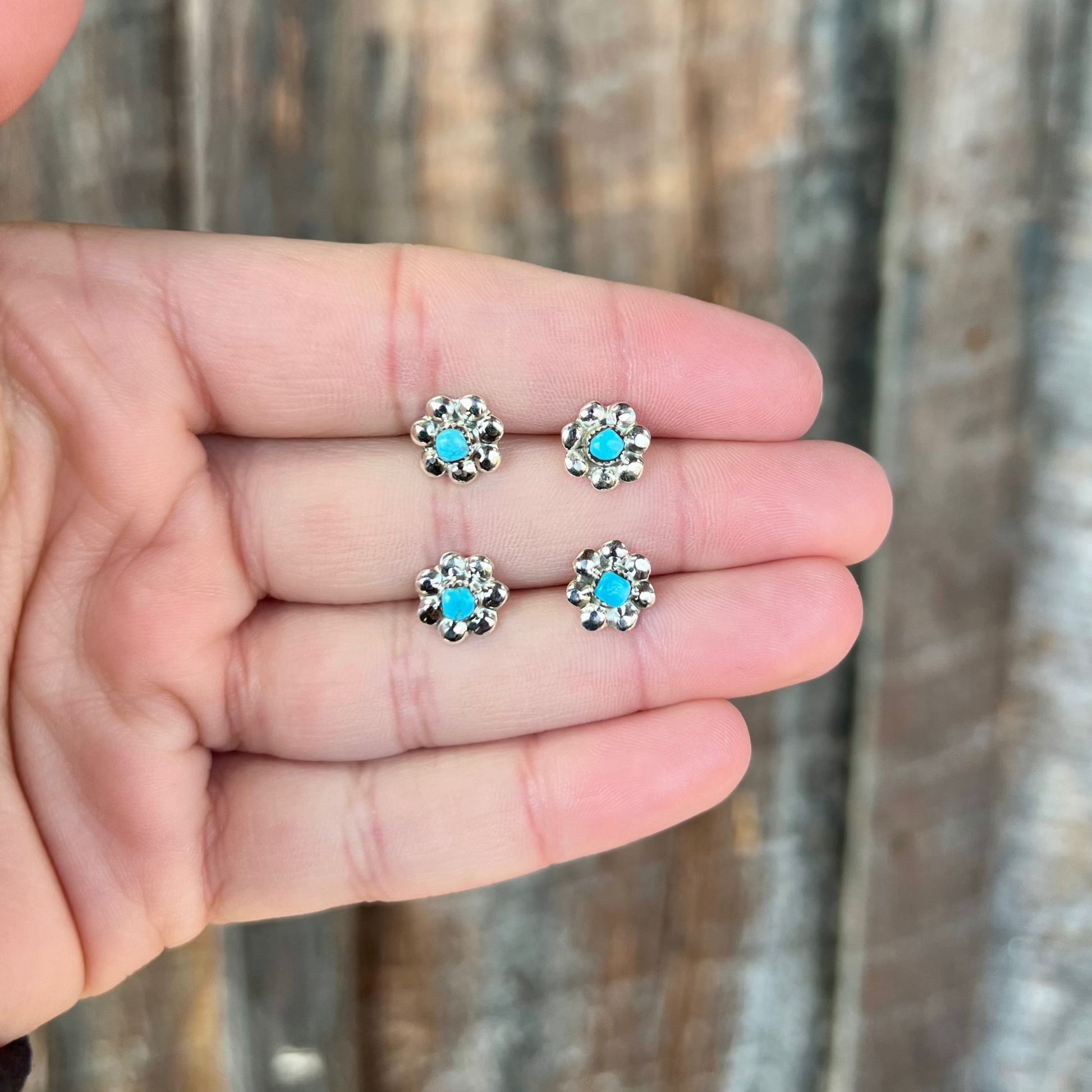 Sterling Silver Flower with Genuine Turquoise Stud Earrings