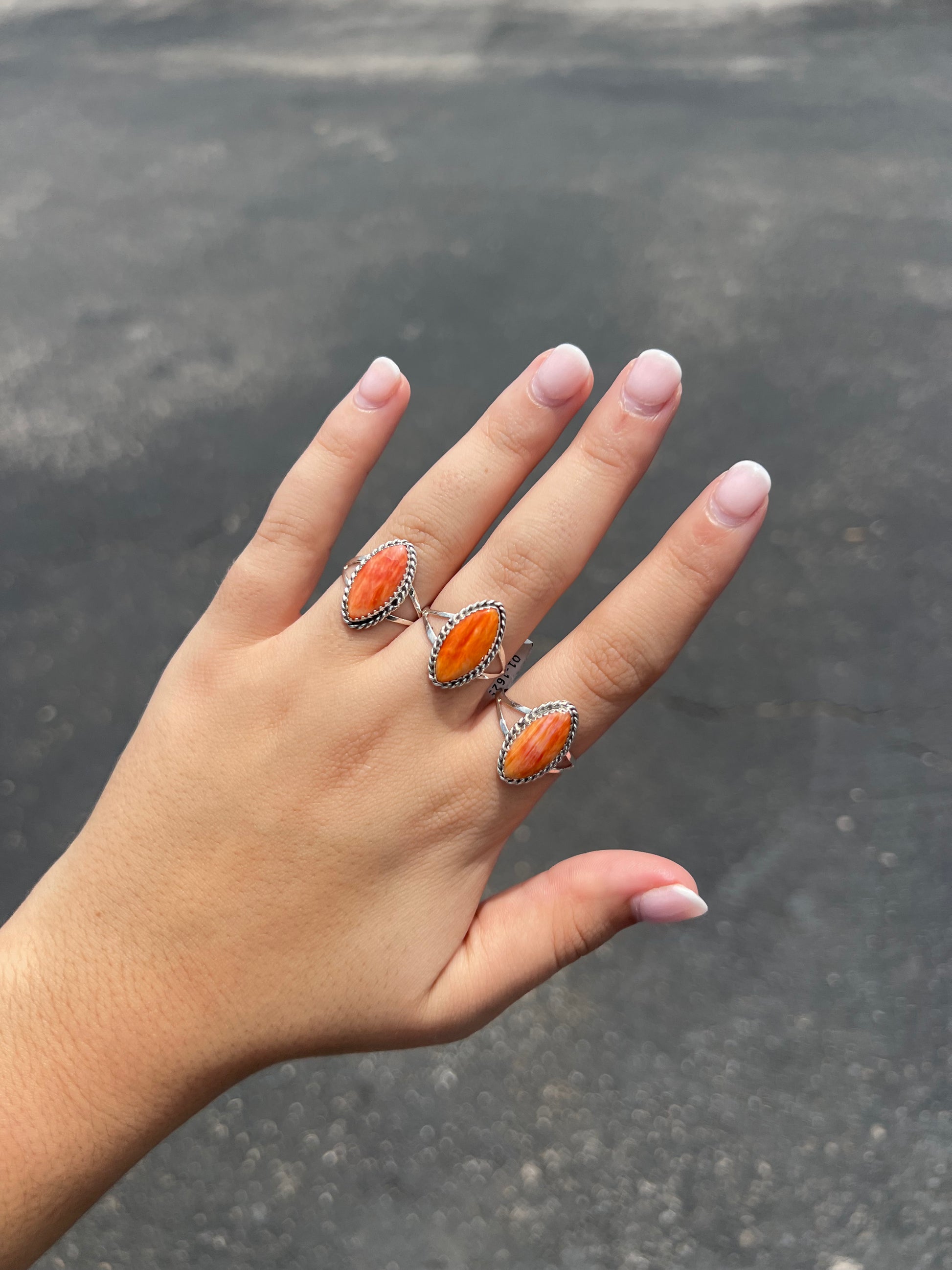 The Ada Authentic Orange Spiny Oyster Sterling Silver Ring