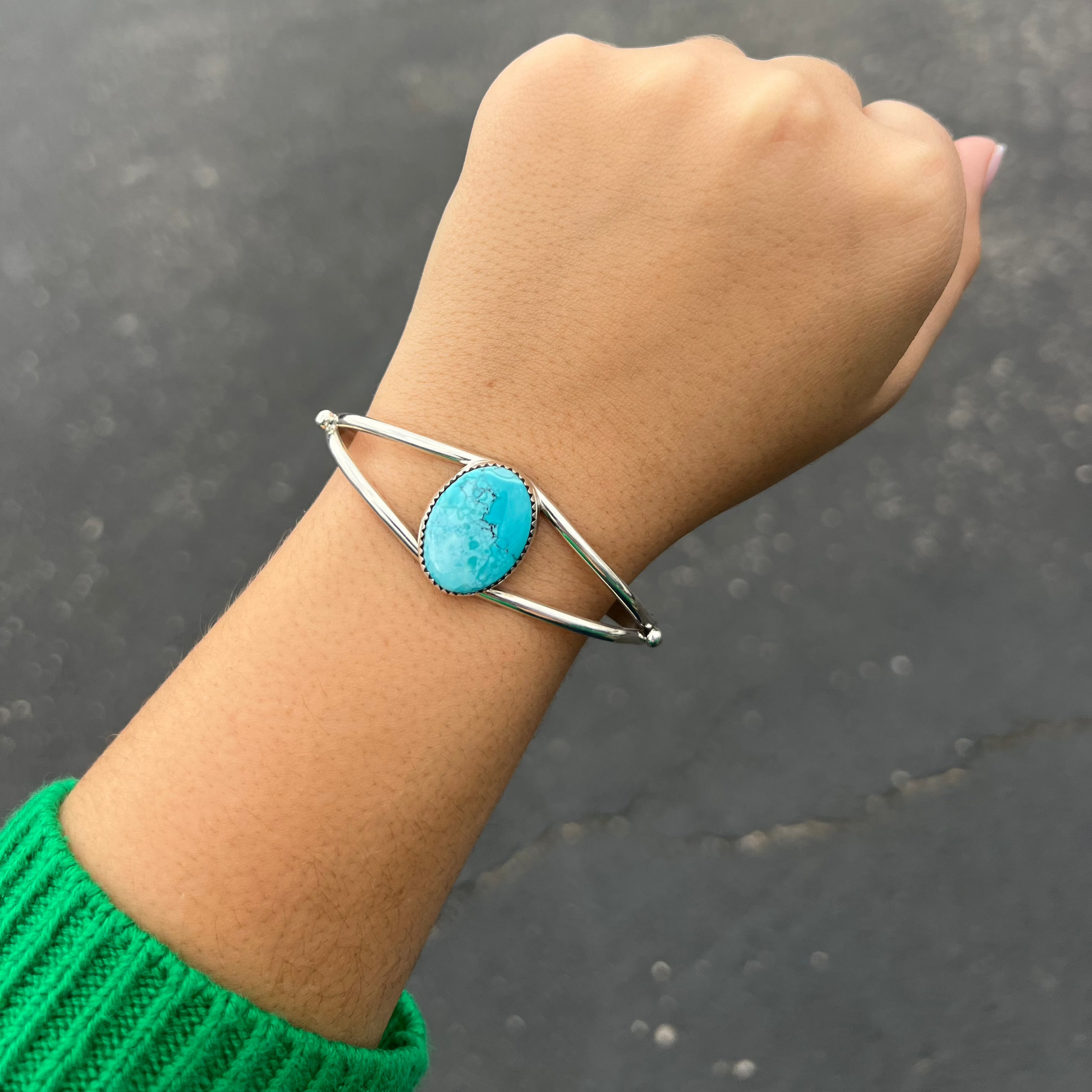 The Adeline Genuine Turquoise Oval Cuff Sterling Silver Bracelet