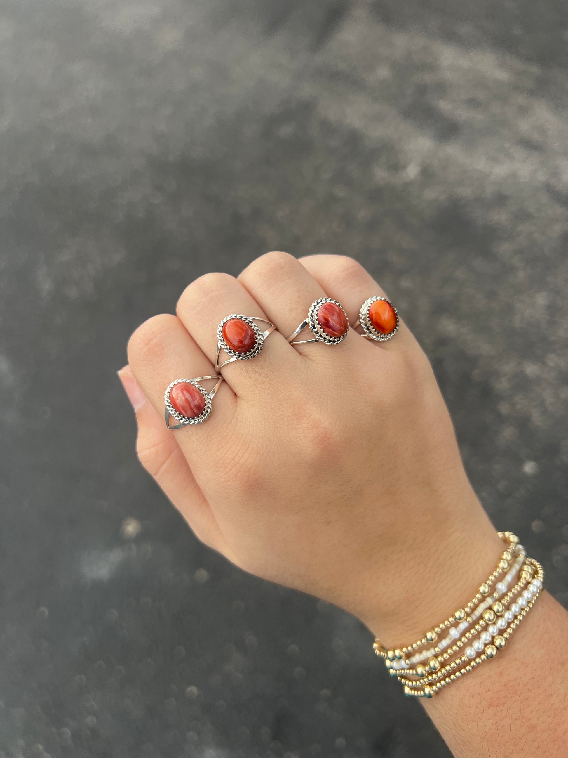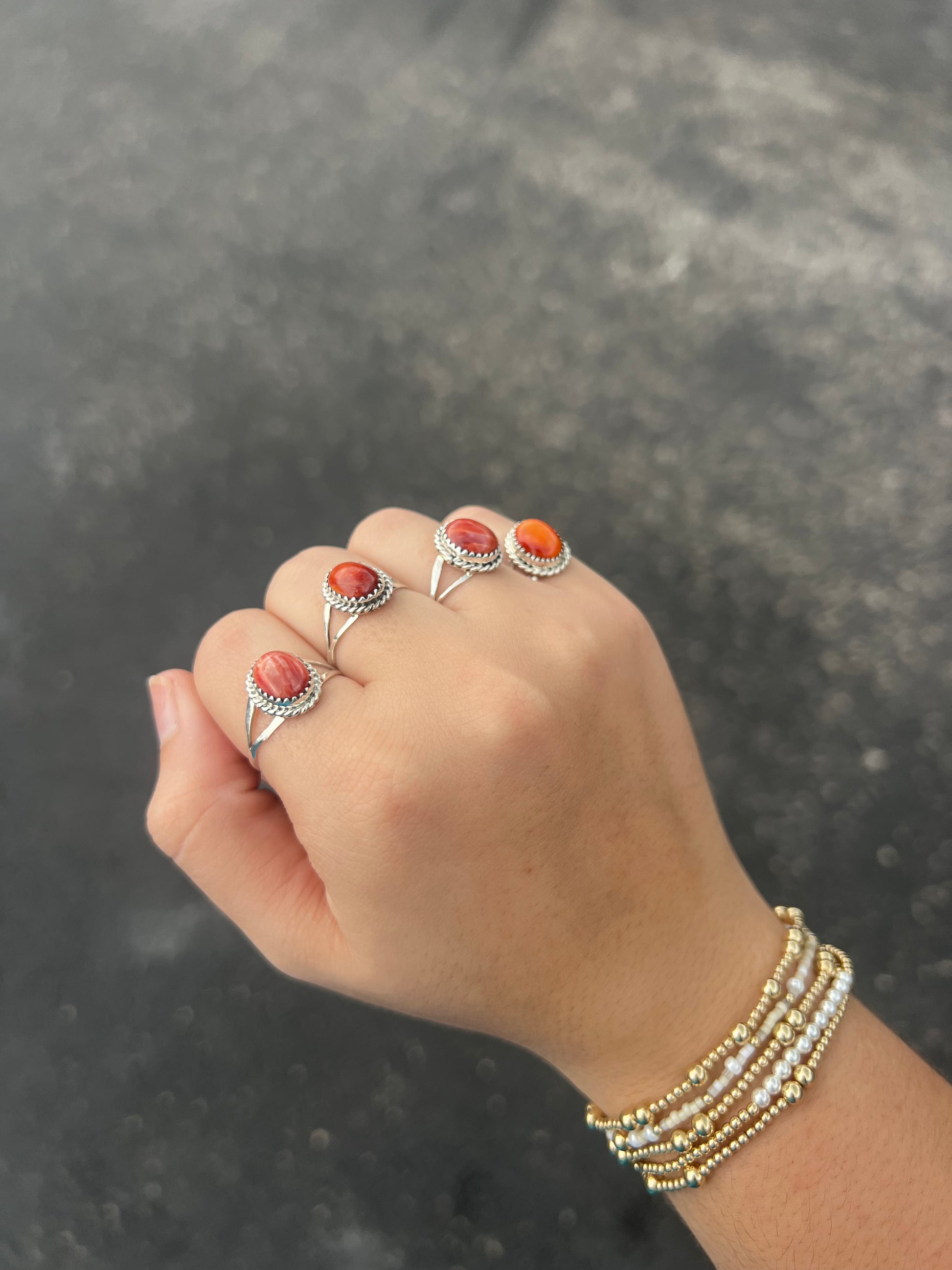 The Evelyn Turquoise or Spiny Oyster Sterling Silver Ring