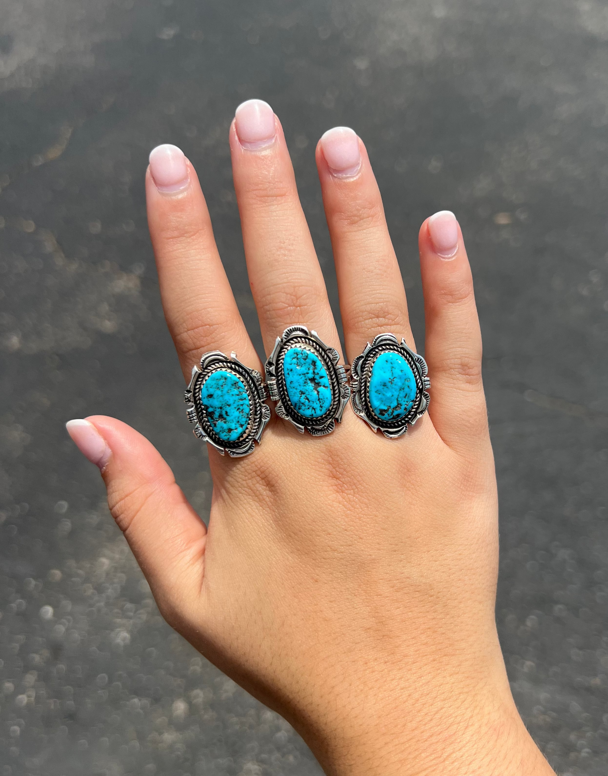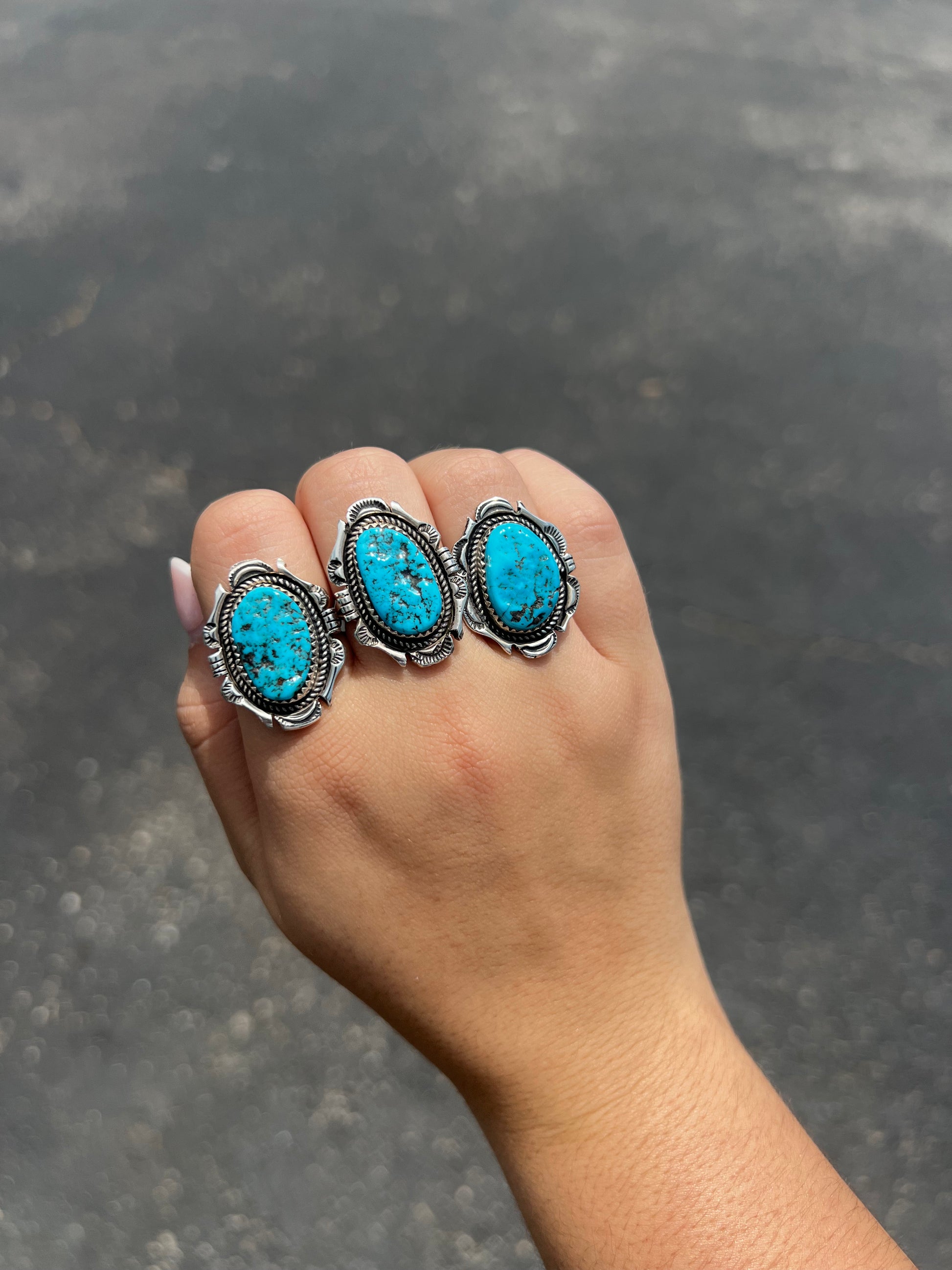 -Authentic Native American Handmade Genuine Turquoise Sterling Silver Ring