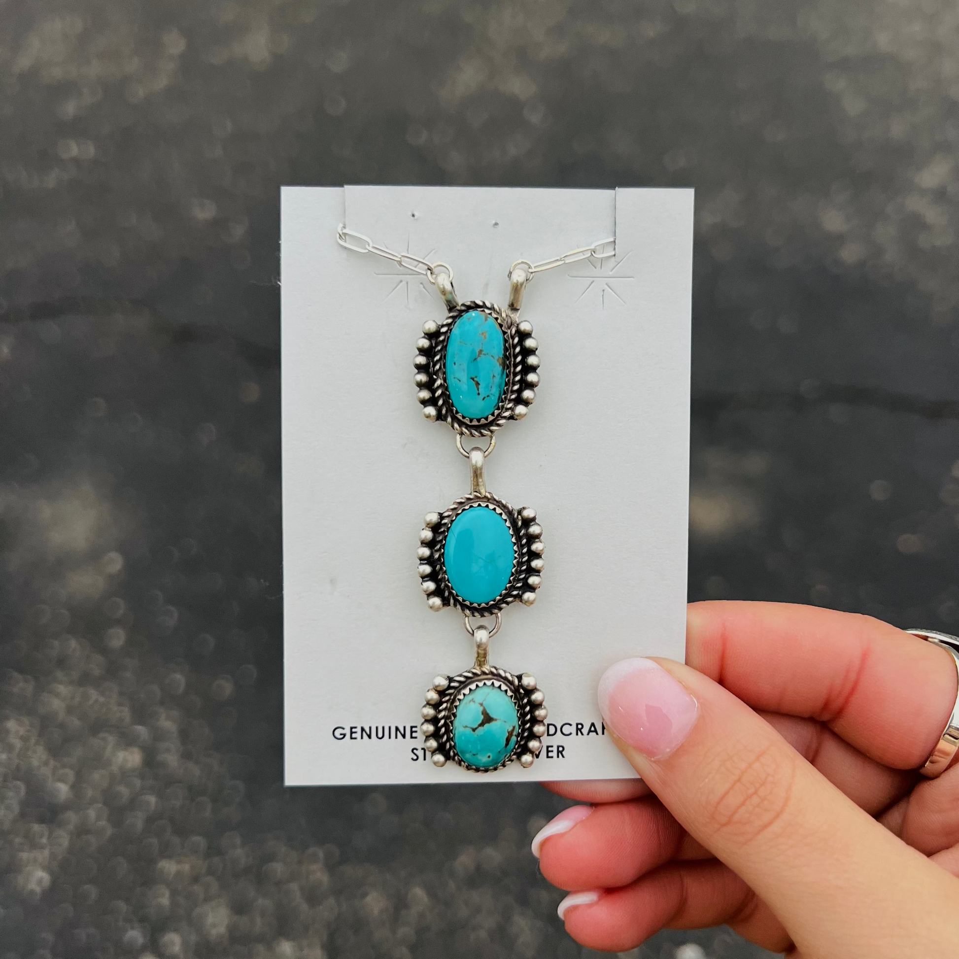 The Luci 3 Stone Oval Genuine Turquoise Sterling Silver Necklace