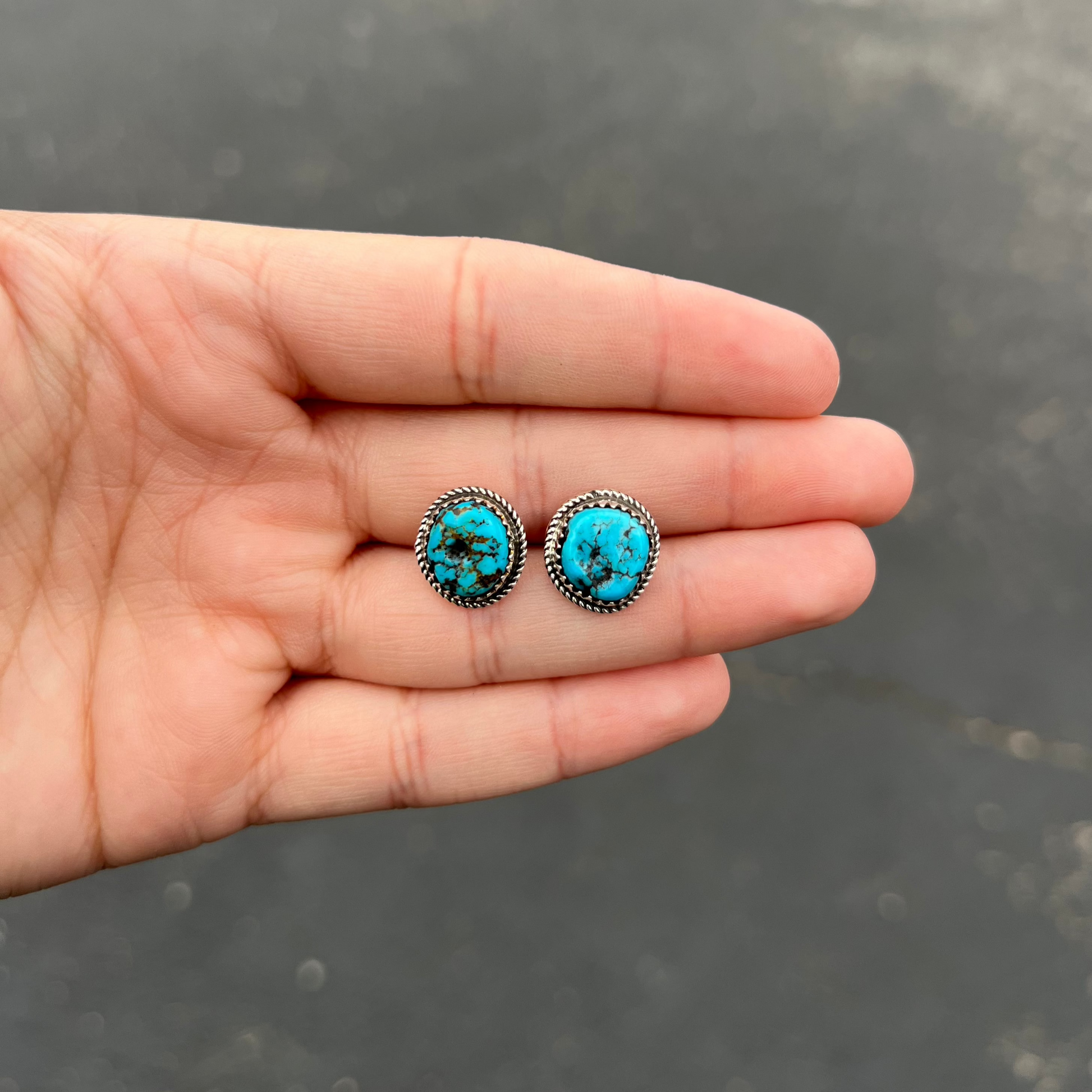 -Authentic Native American Handmade Genuine Turquoise Sterling Silver Earrings