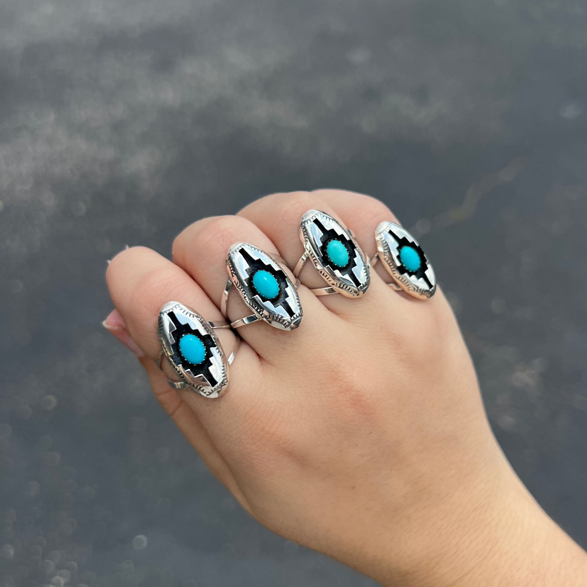 Turquoise and Sterling Silver Aztec Shadowbox Ring