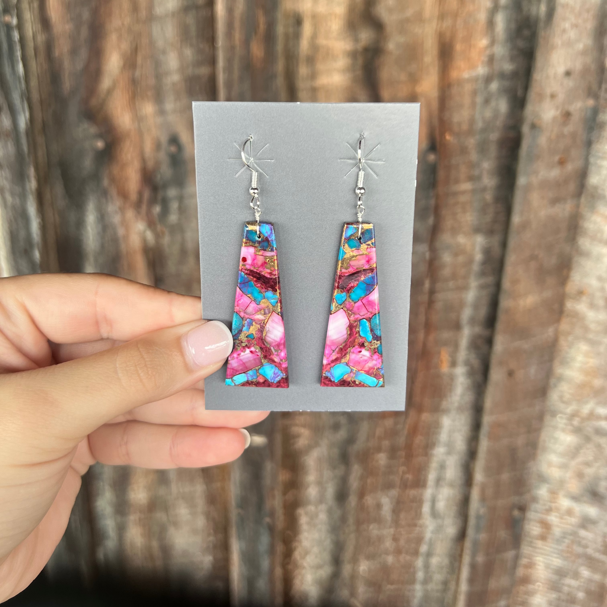Turquoise, Spiny Oyster, and Bronze Slab Earrings