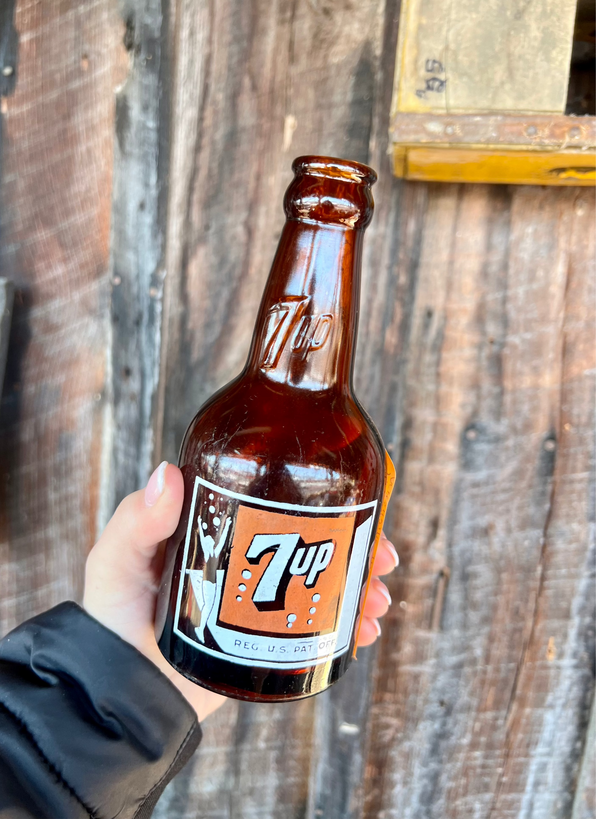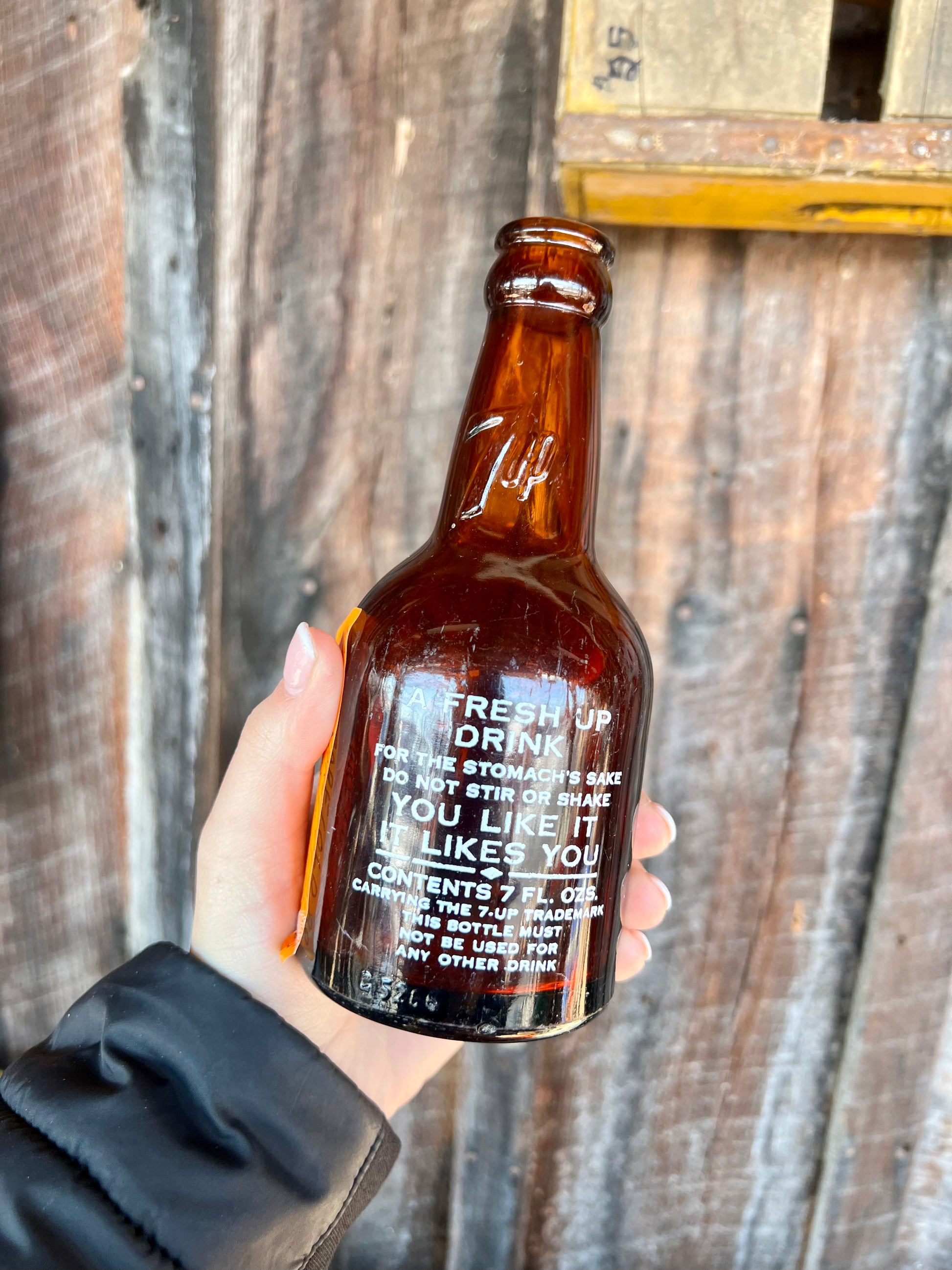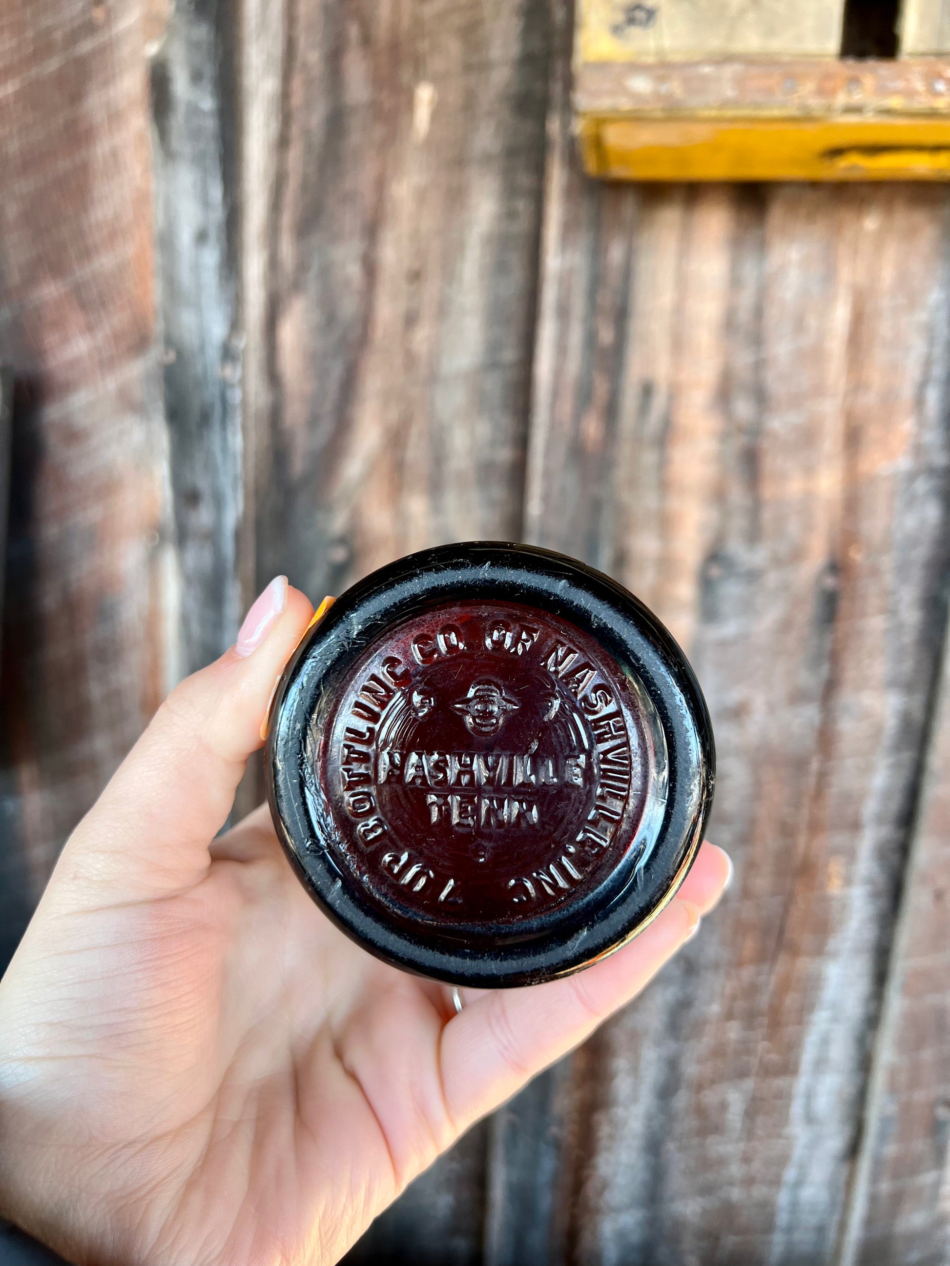 VERY RARE Old Brown Amber 7up Raised letters PLUS Label Glass Bottle - Nashville, TN