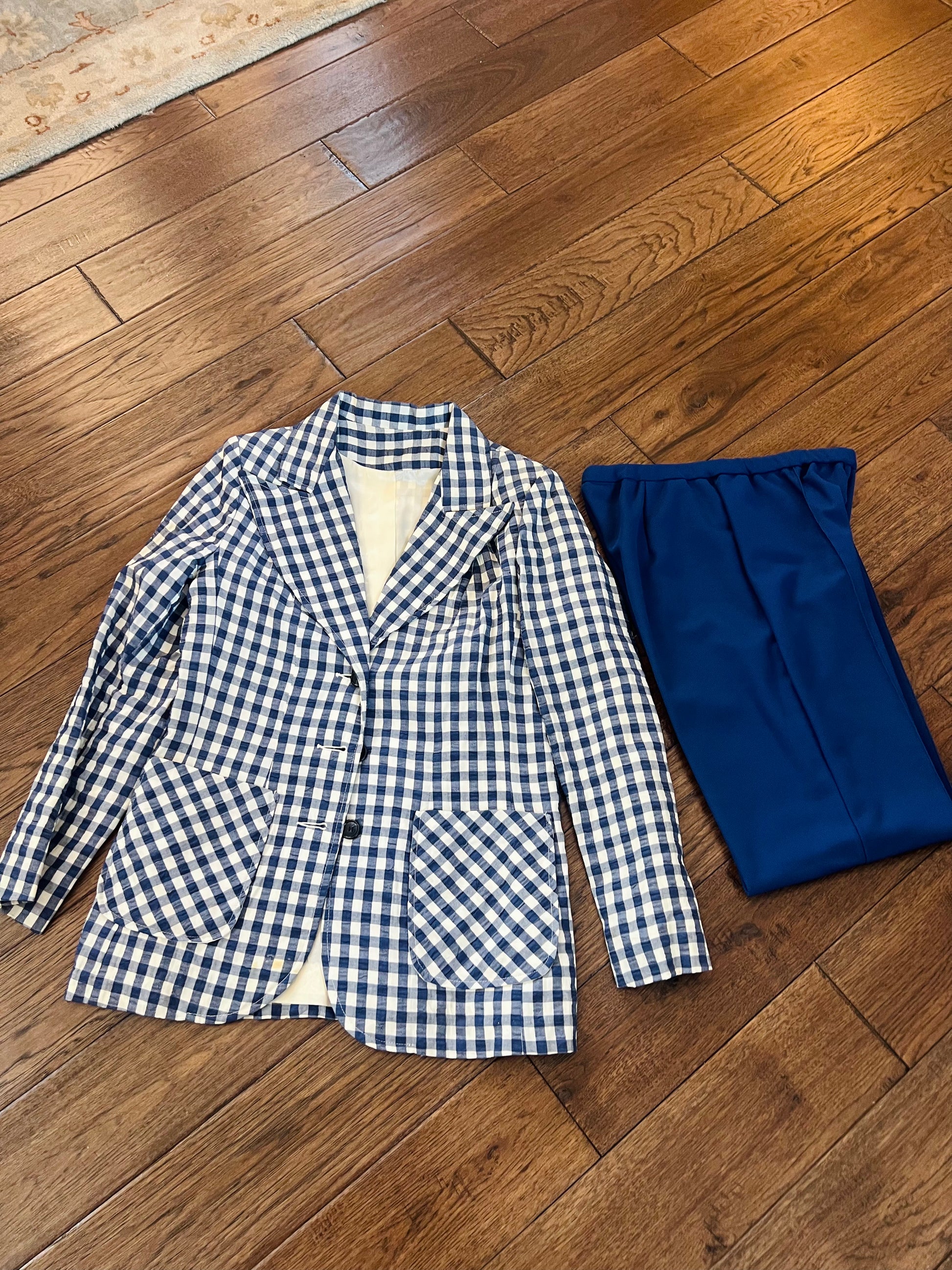 Vintage Alex Colman California Blue Gingham Blazer and Trousers Set