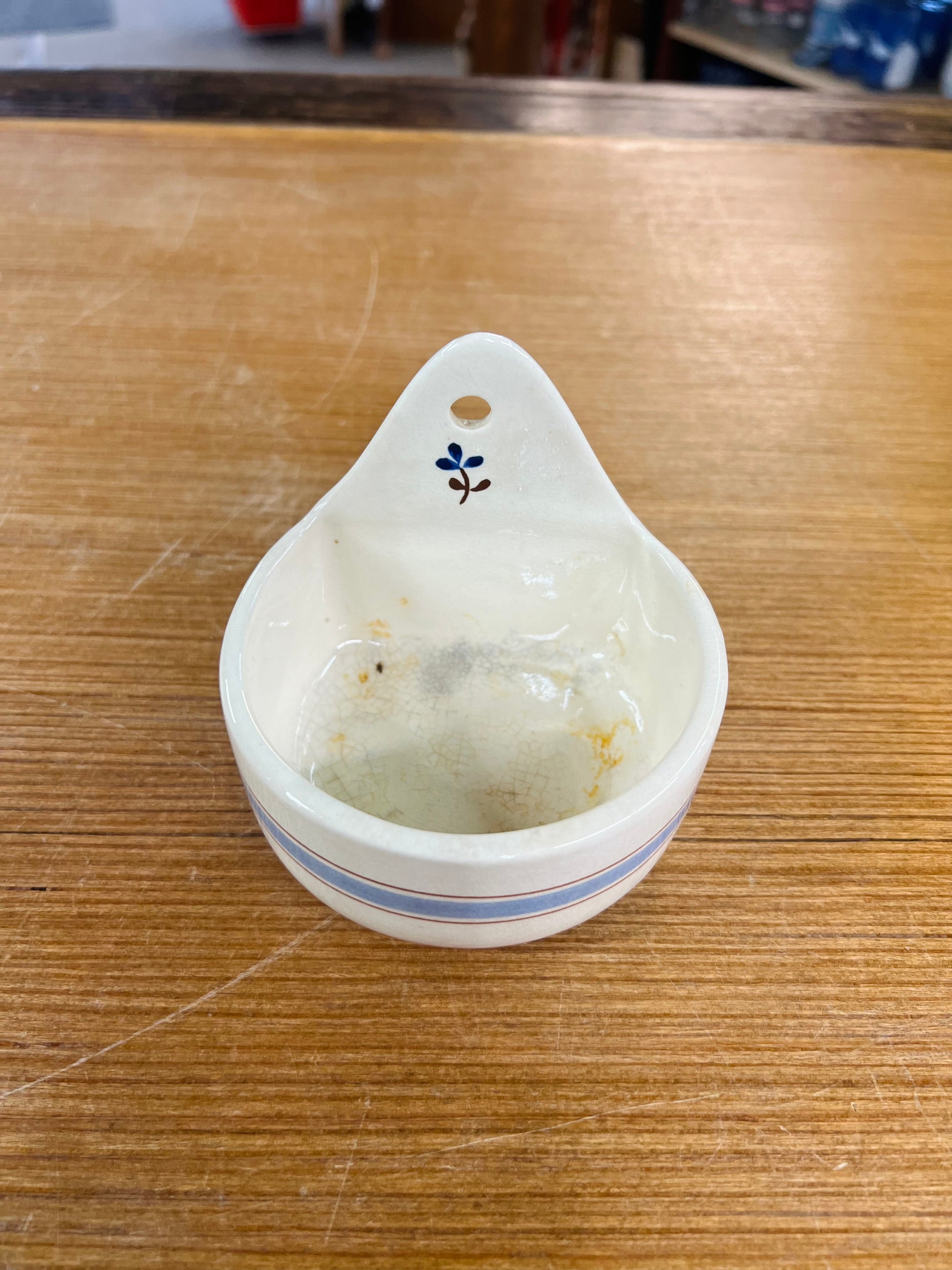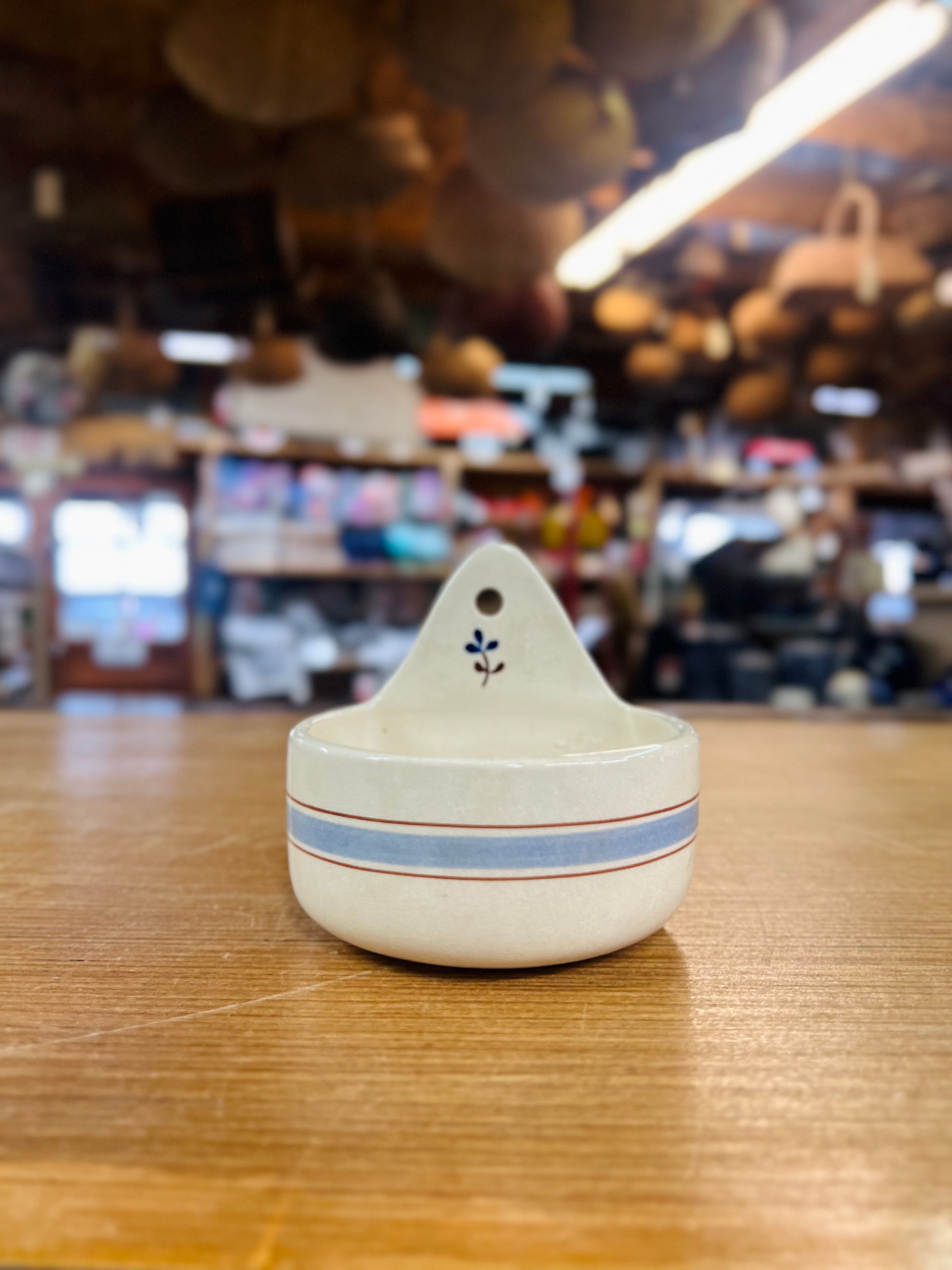 Vintage Ceramic Blue Stripe Wall Pocket