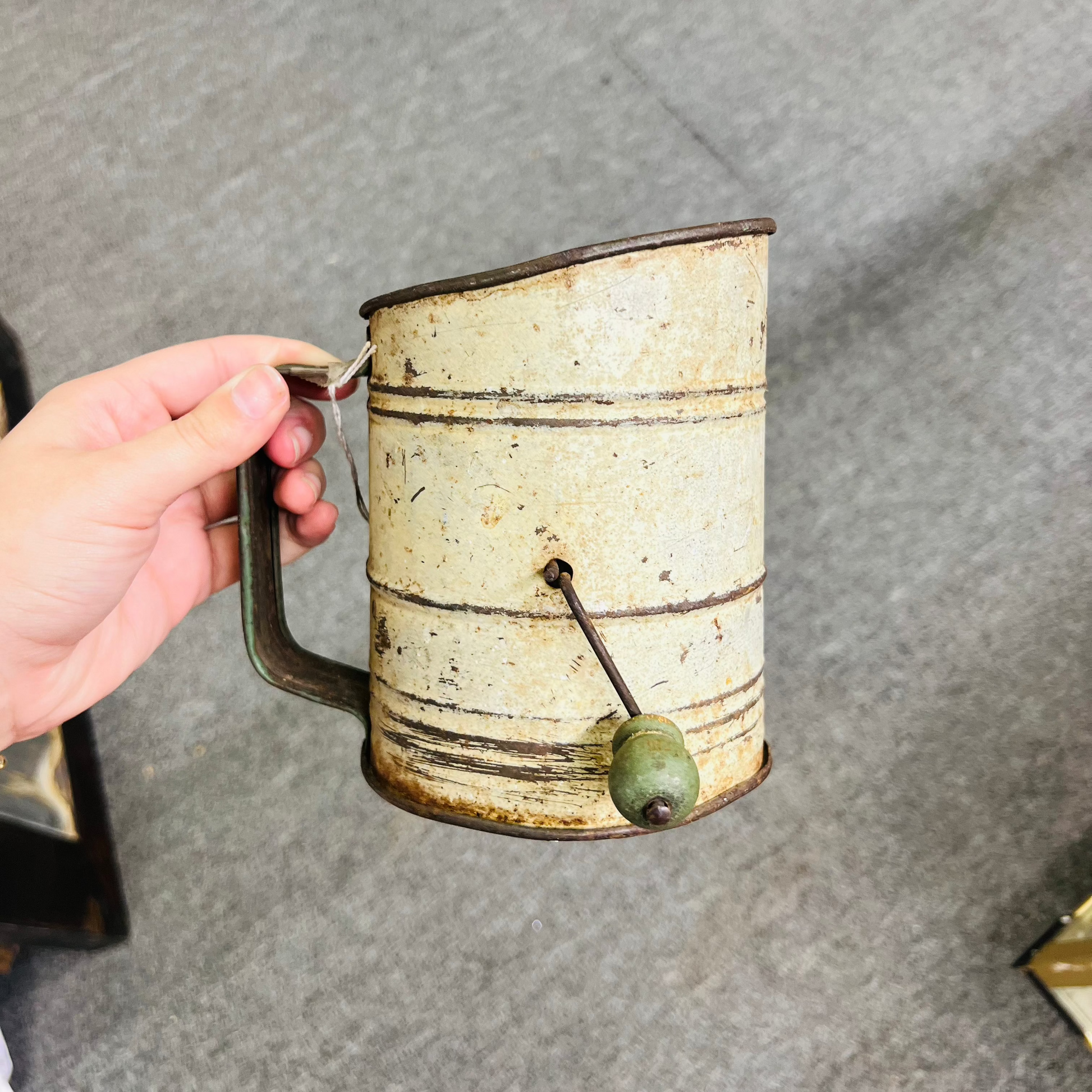 Vintage Green / White Flour Sifter