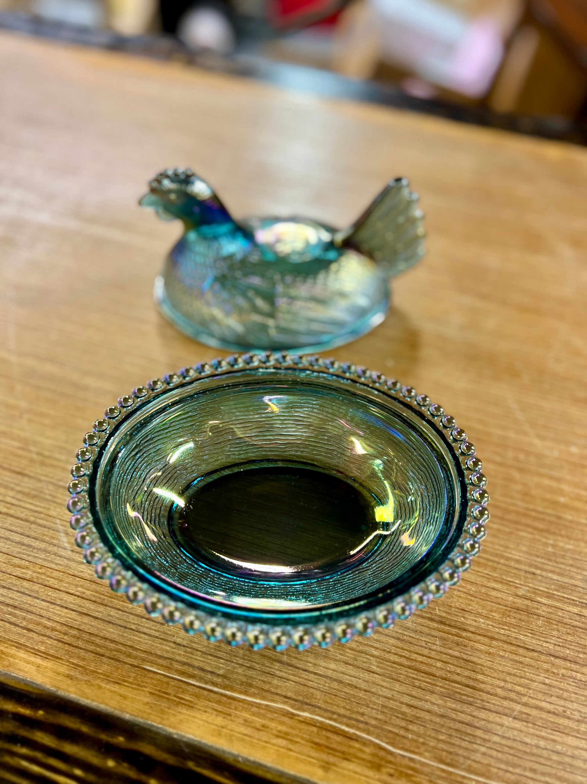 Vintage Hen on Nest Carnival Glass Candy Dish