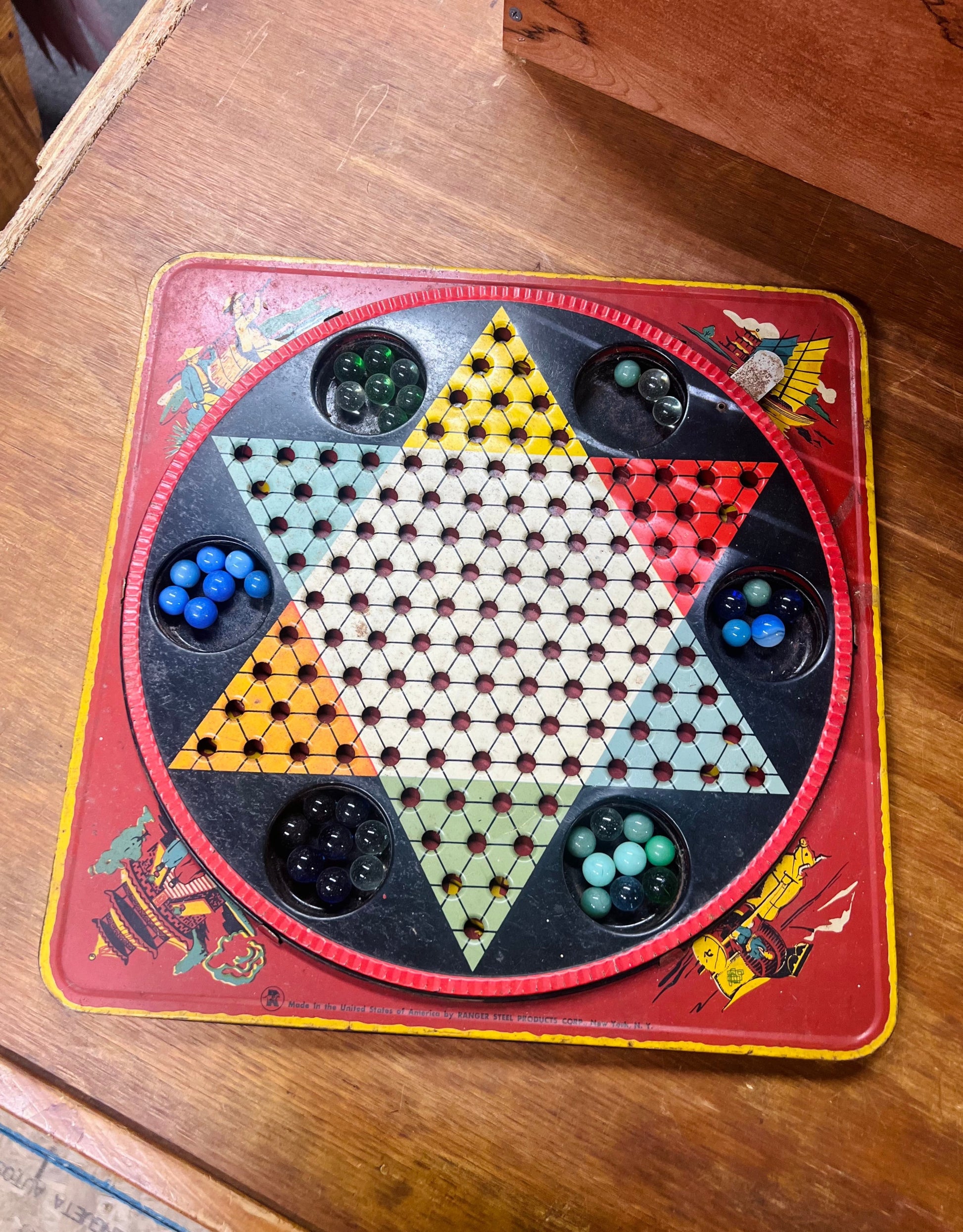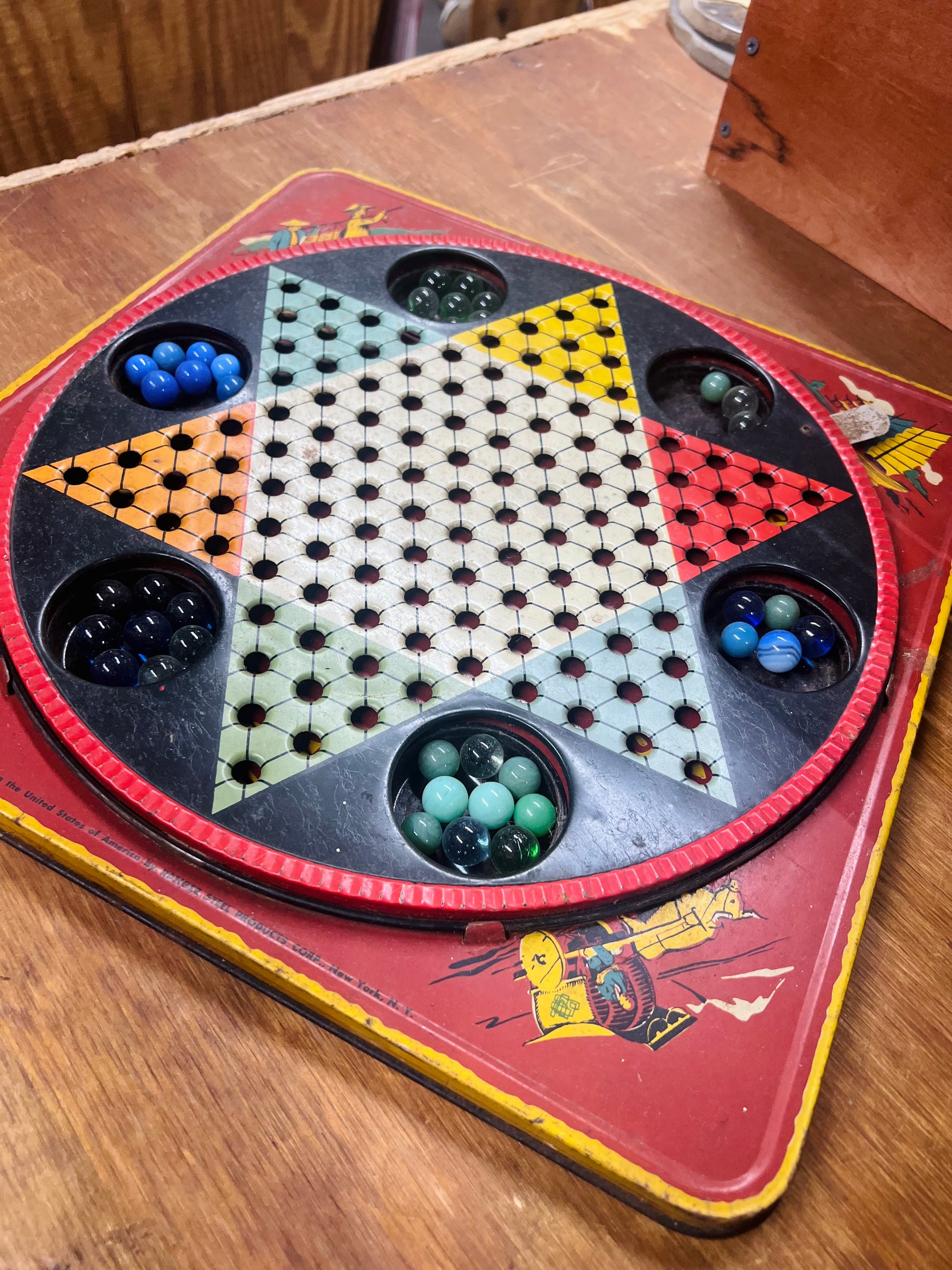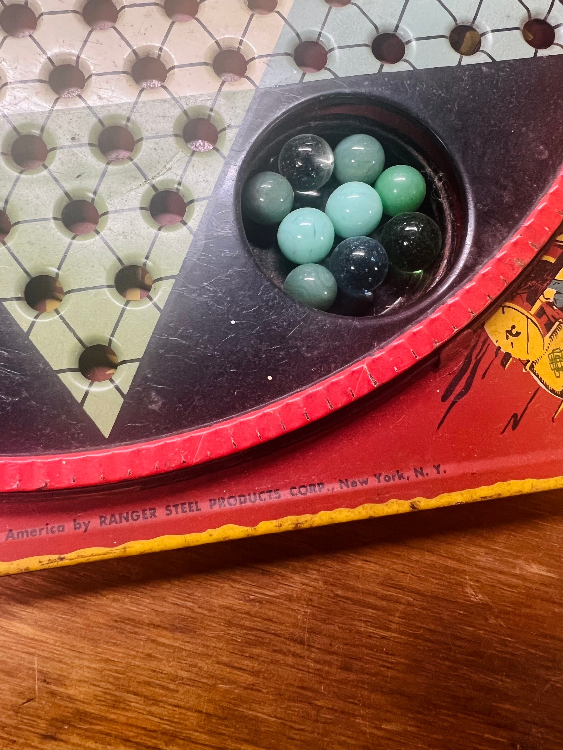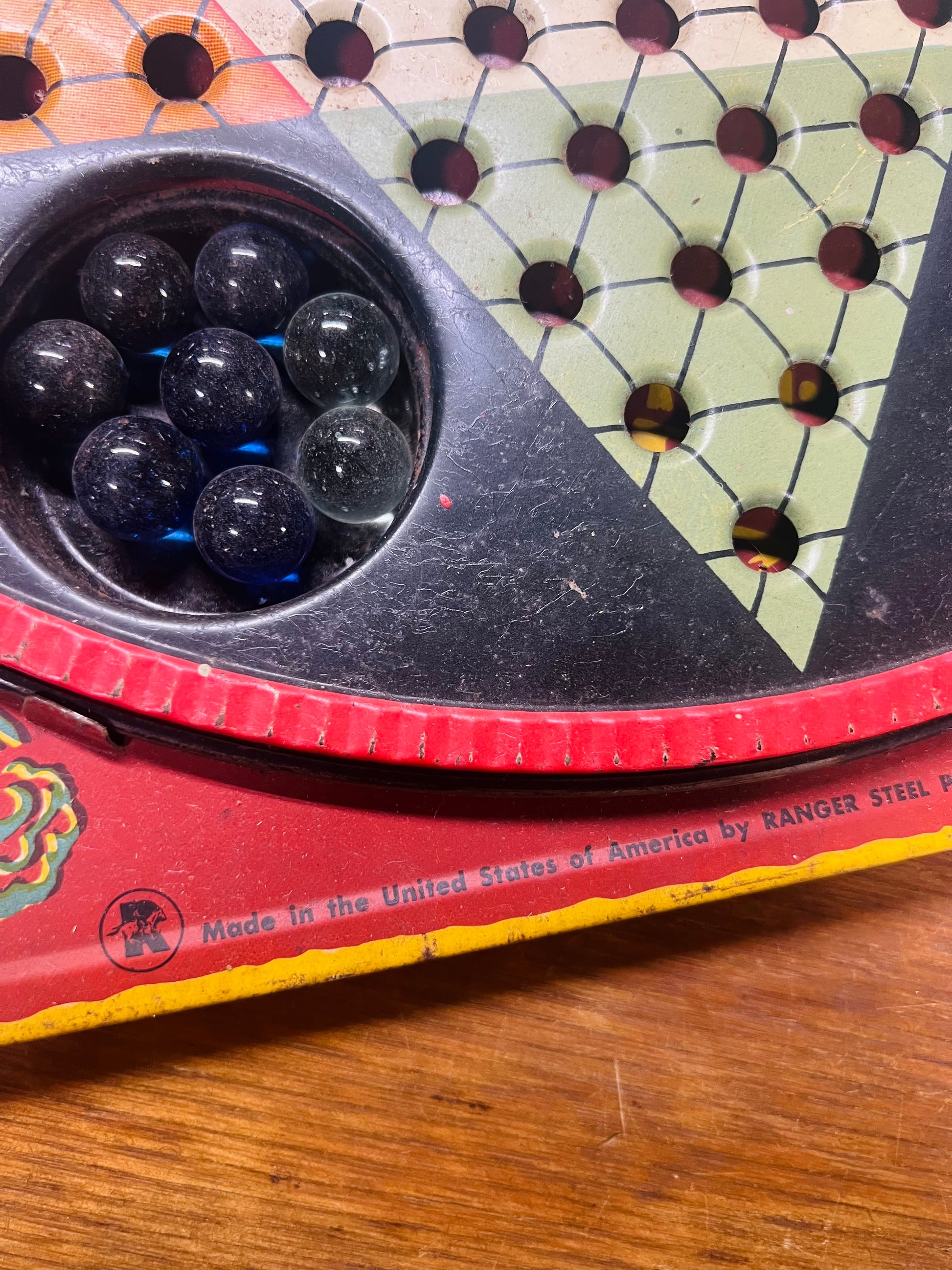 Vintage Ranger Steel Products Chinese Checker Game Board - With Marbles
