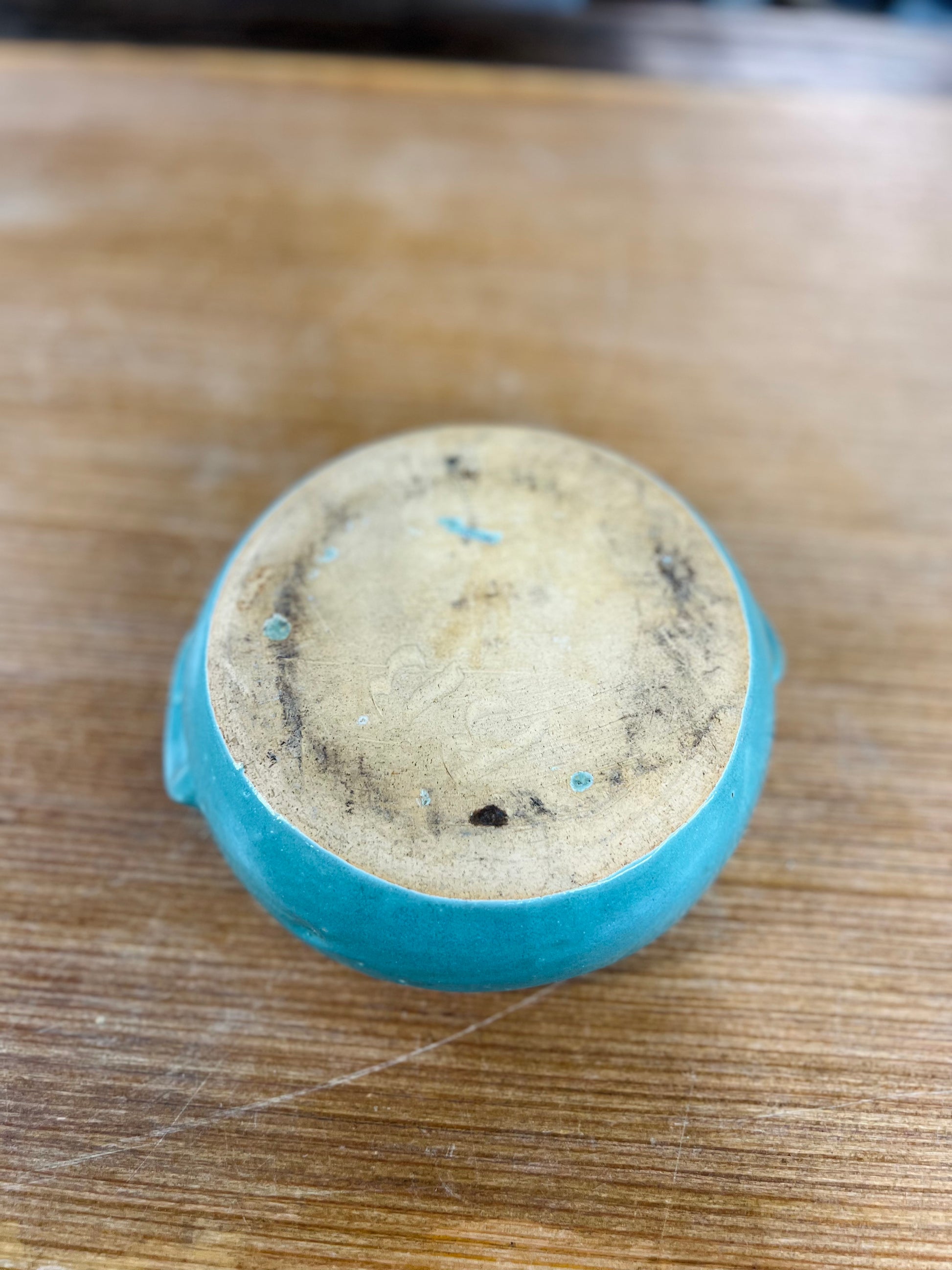Vintage Turquoise Pottery Bowl with Side Handles