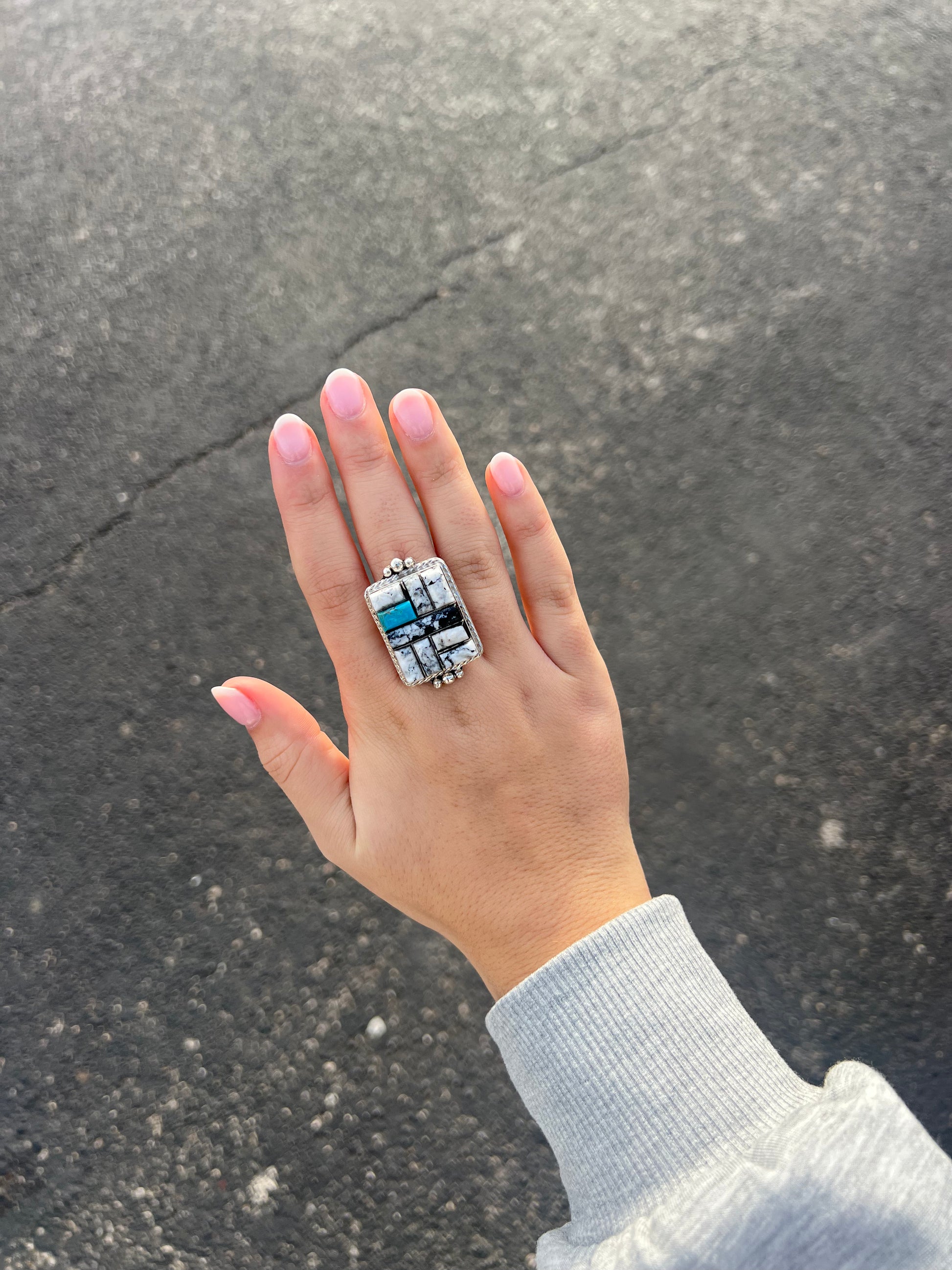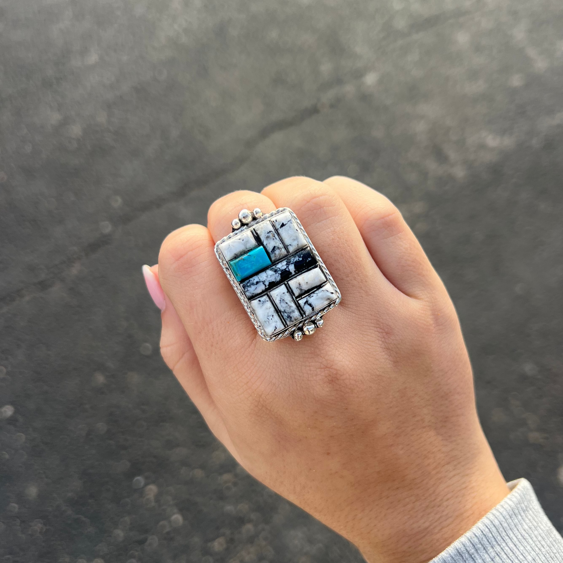 White Buffalo and Turquoise Inlay Statement Ring